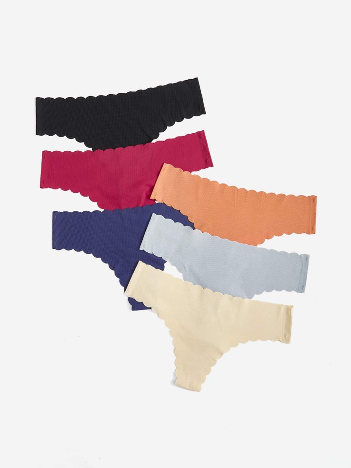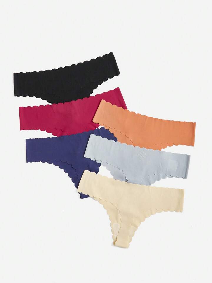 6 pacchi Set perizoma monocolore con orlo smerlato