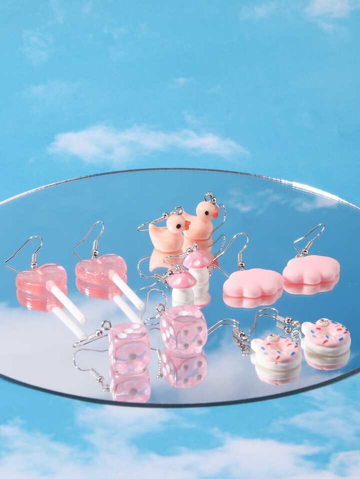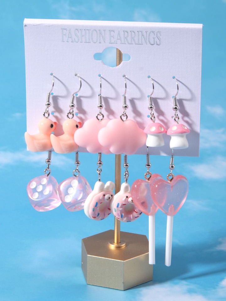 6 paia Orecchini pendenti anatra dei cartoni animati & lollipop
