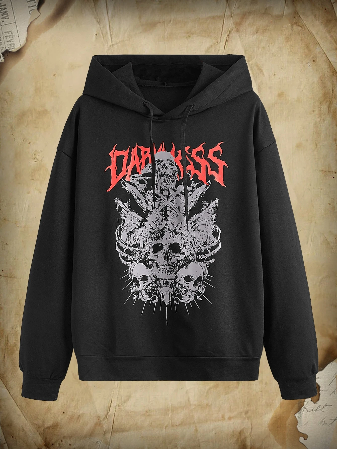 Academia Felpa con cappuccio lettere con grafica cranio con coulisse