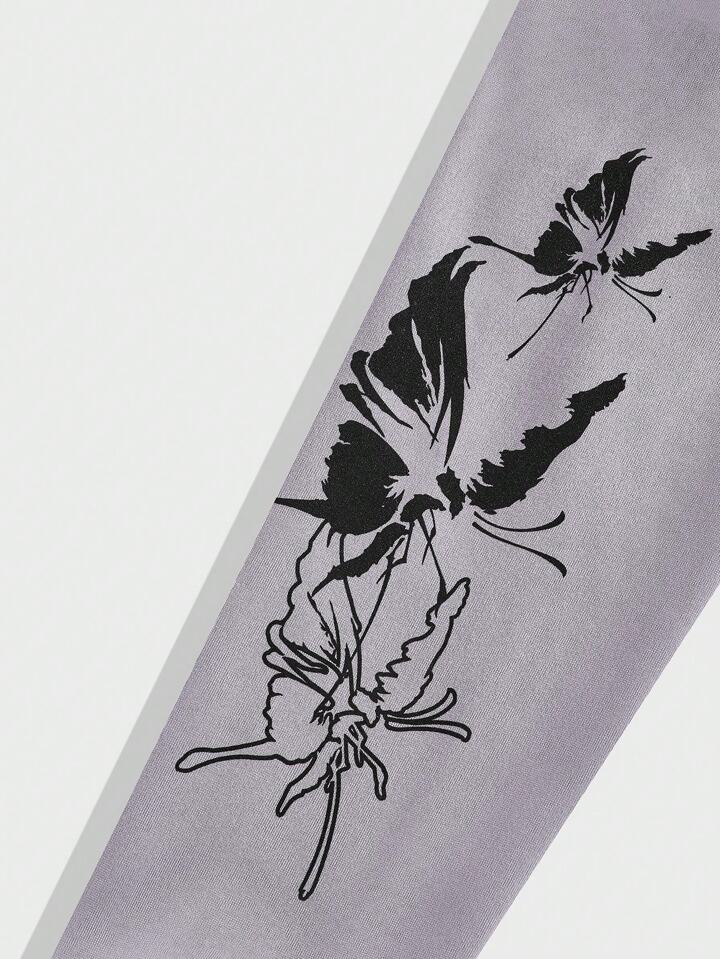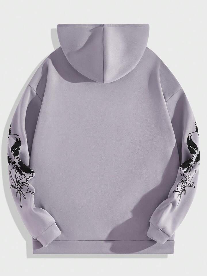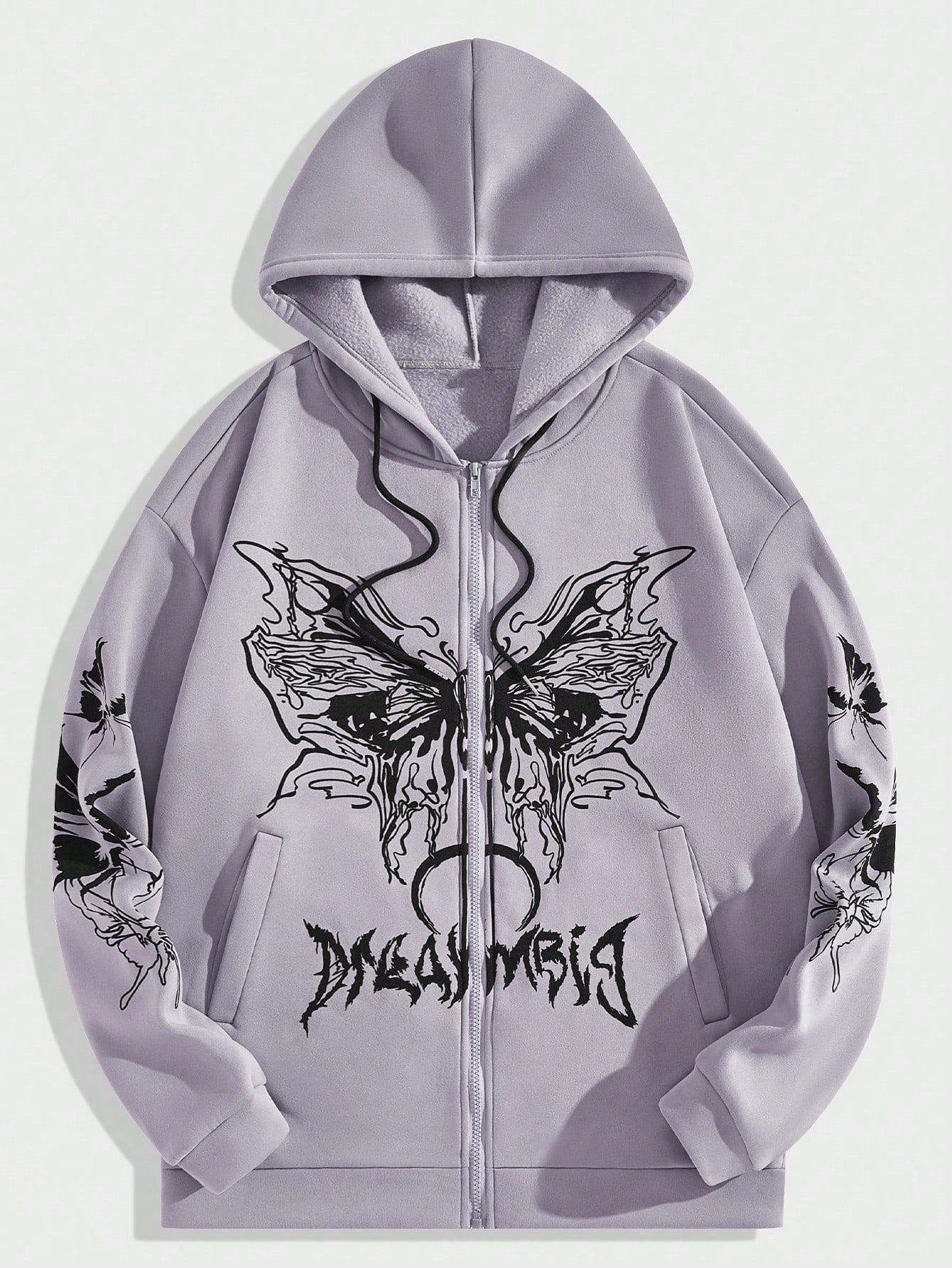 Academia Uomo Felpa con cappuccio con grafica lettera & farfalla con zip con coulisse foderato termico