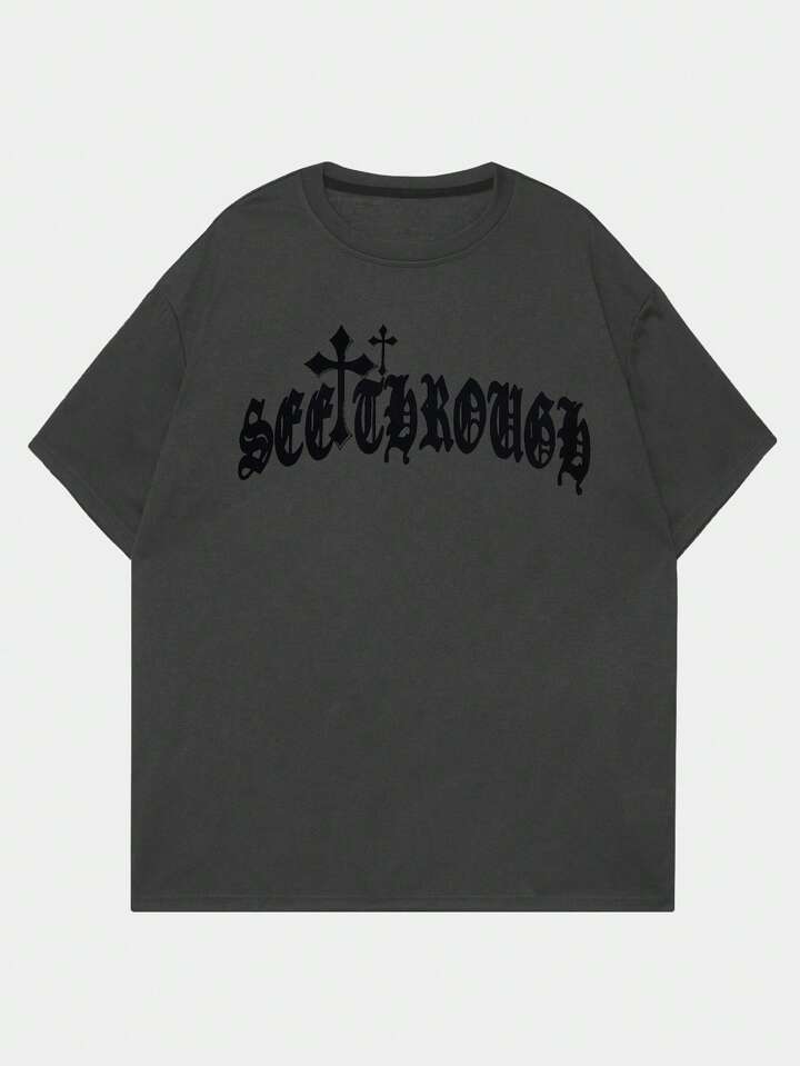Academia Maglietta Grafica Con Slogan A Croce Per Uomo