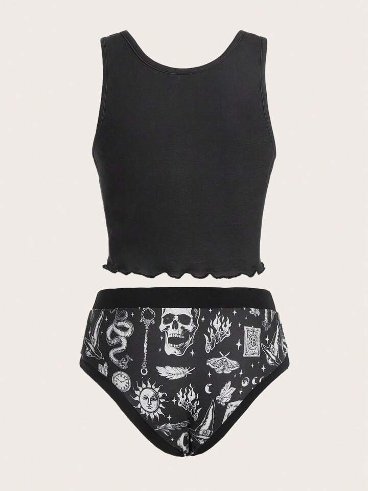 Academia Set pigiama con stampa stella e luna orlo lattuga