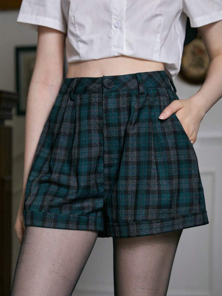 Academia Shorts con stampa quadri plissettato