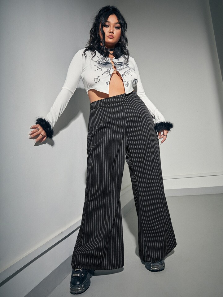 Academia Taglie Forti Pantaloni a gamba larga a righe
