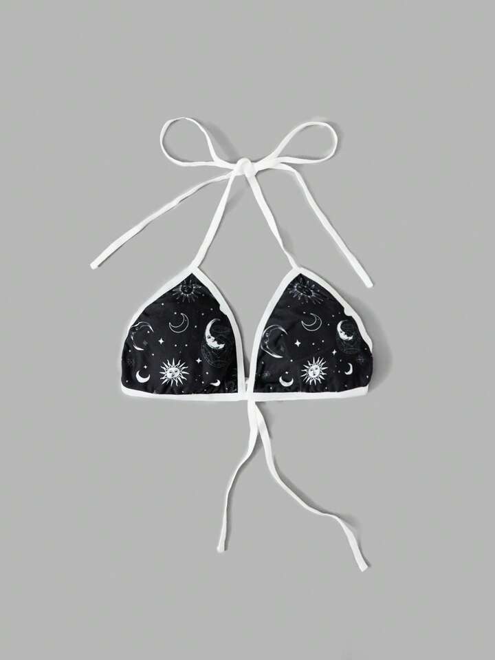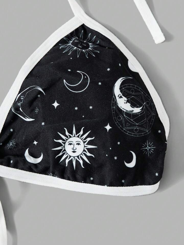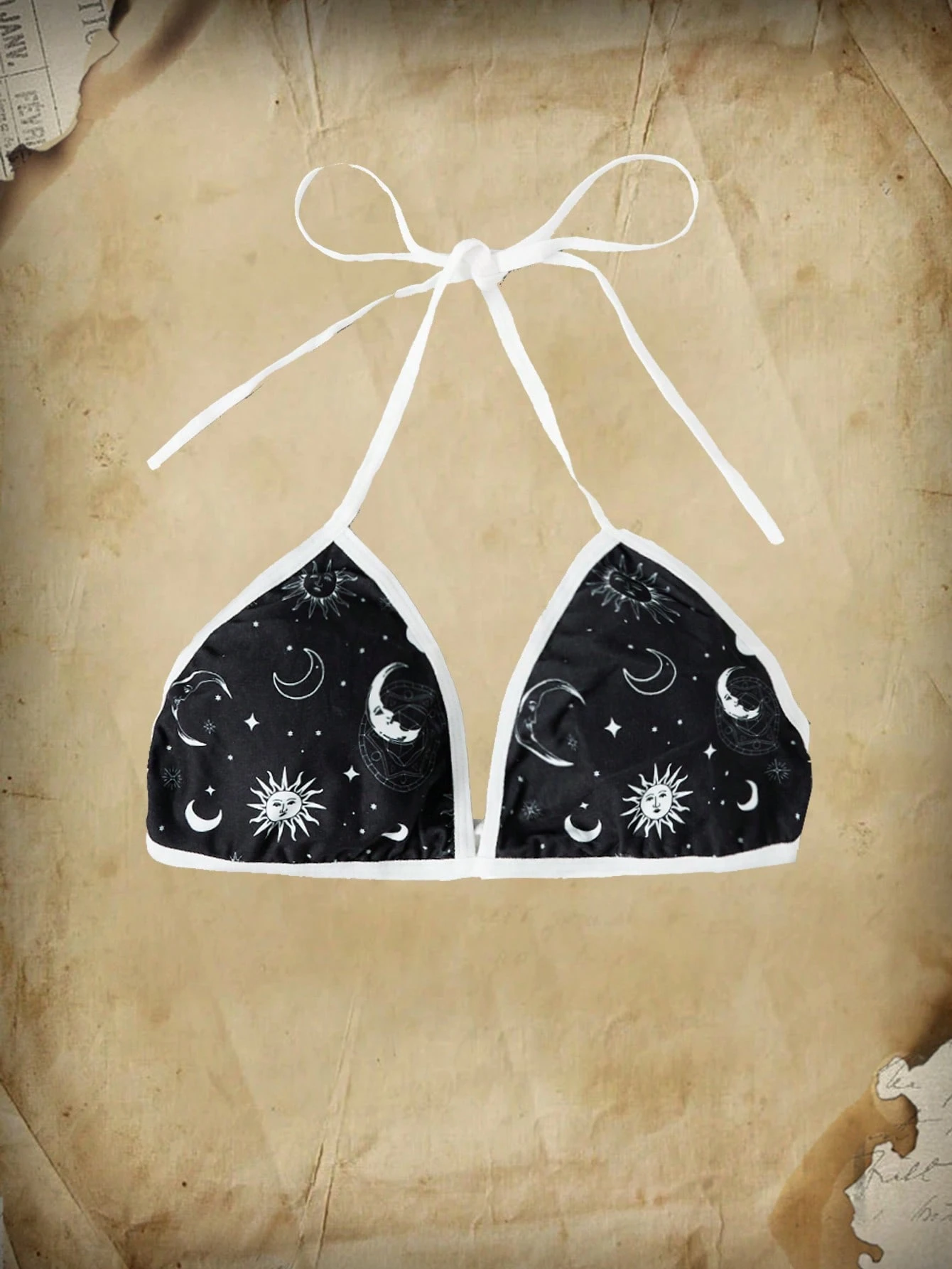 Academia Bralette con grafica luna e sole bordo a contrasto halter