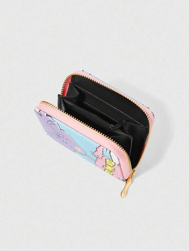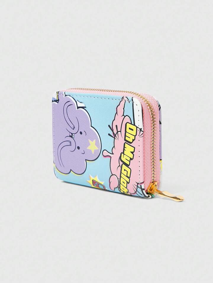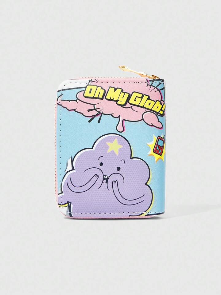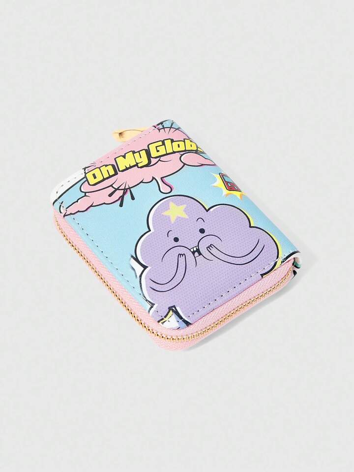 Adventure Time X ROMWE Portafoglio piccolo con grafica di cartoni animati e slogan, stile corto