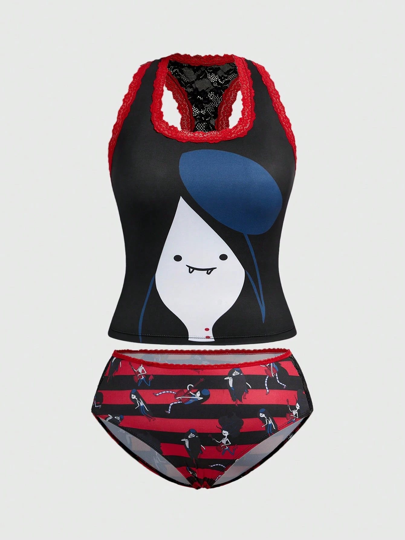 Adventure Time X ROMWE Set di reggiseno e slip in pizzo a contrasto per taglie forti