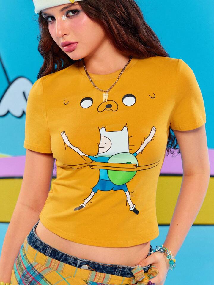 Adventure Time X ROMWE Maglietta da donna con grafica divertente e novità a tema cartone animato, stile Y2K