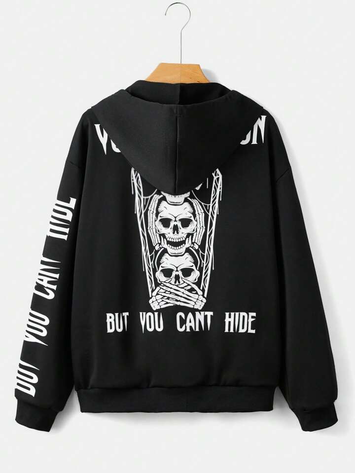 Afdhal Studio Felpa con cappuccio slogan & con stampa teschi spalle cadenti con coulisse zip