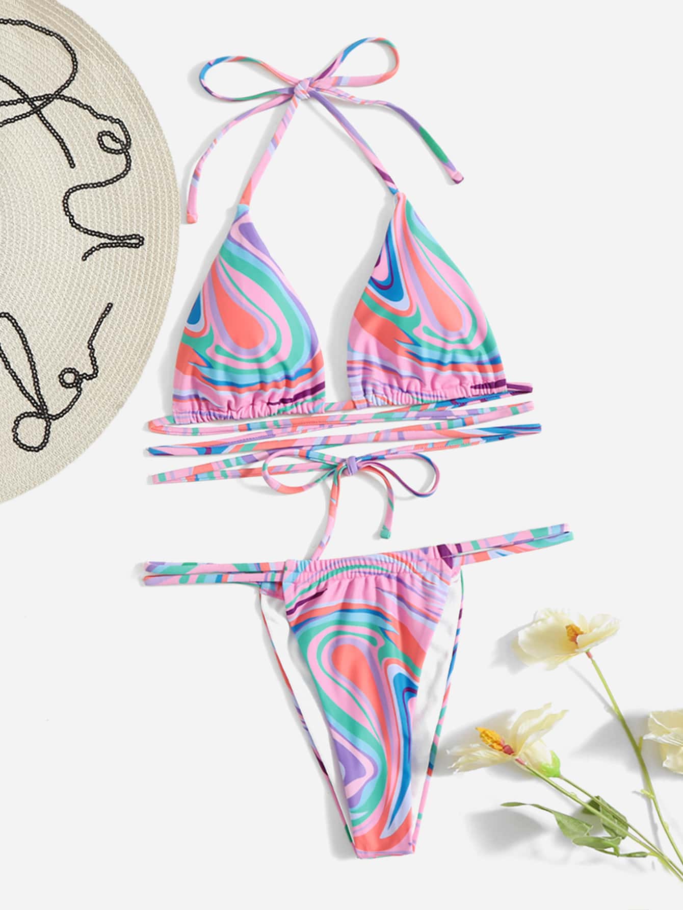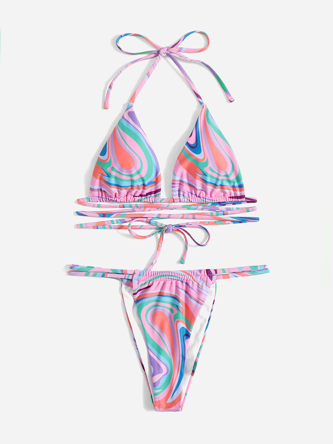 Bikini incrociato al collo con stampa totale