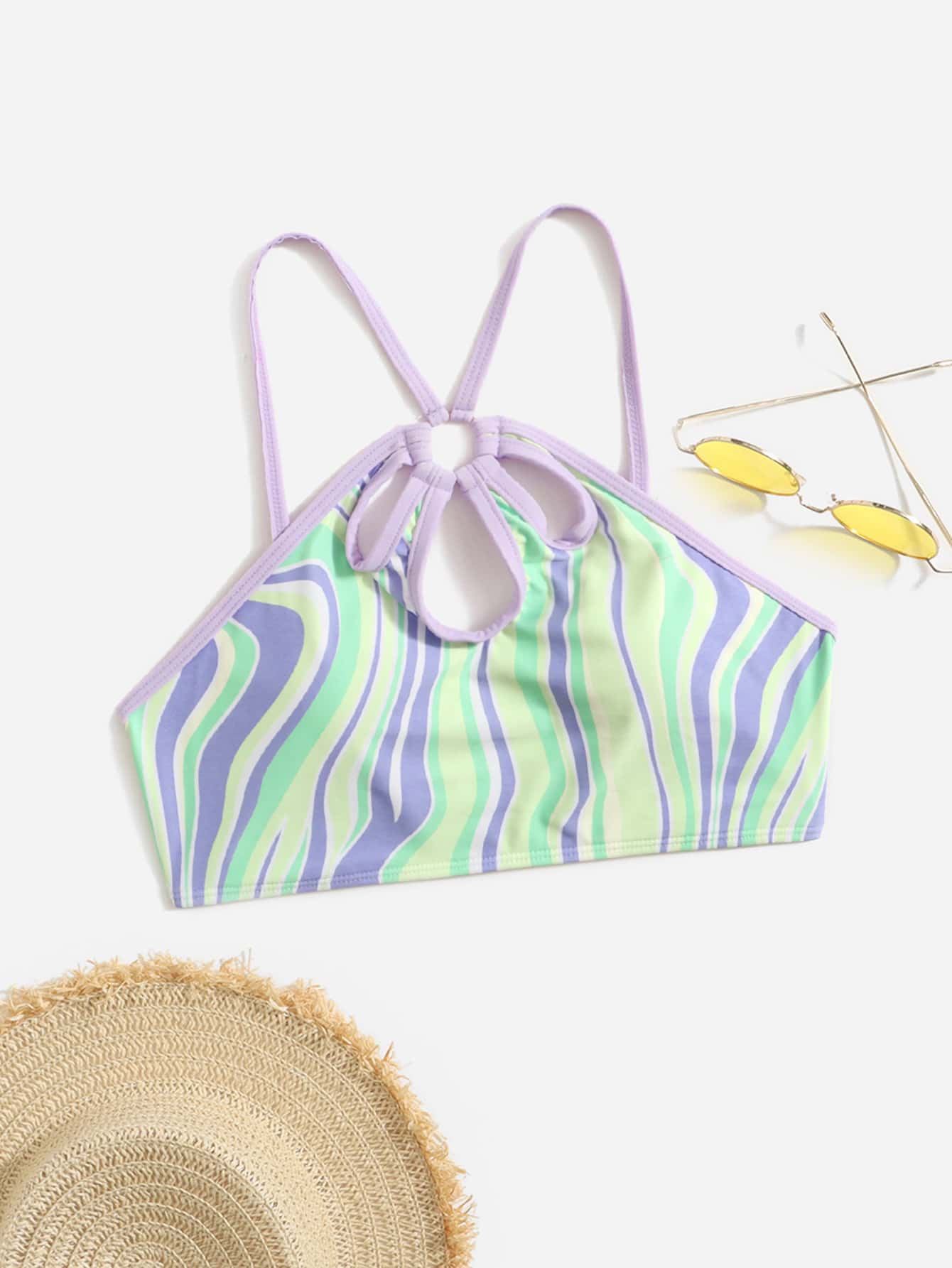 Tops bikini stampato scavato anello collegato