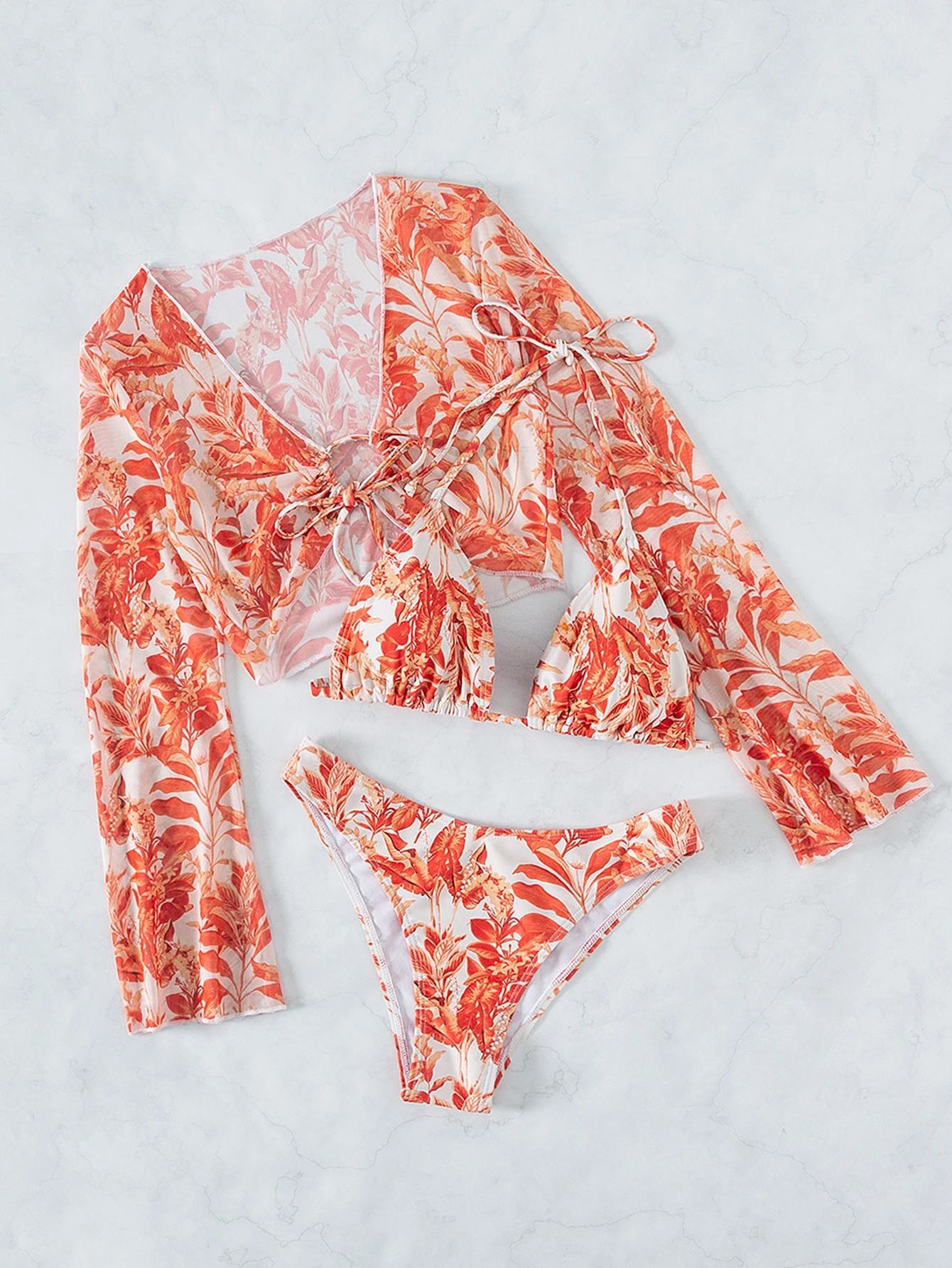 Insieme bikini estivo con copertura, modello floreale all over, triangolo, con scollo all' americana