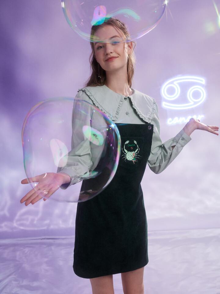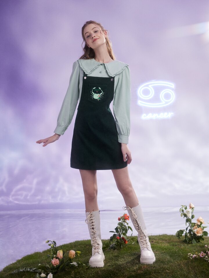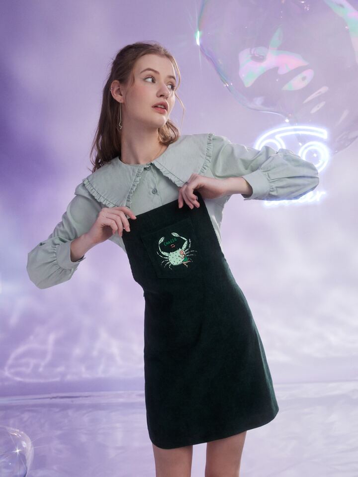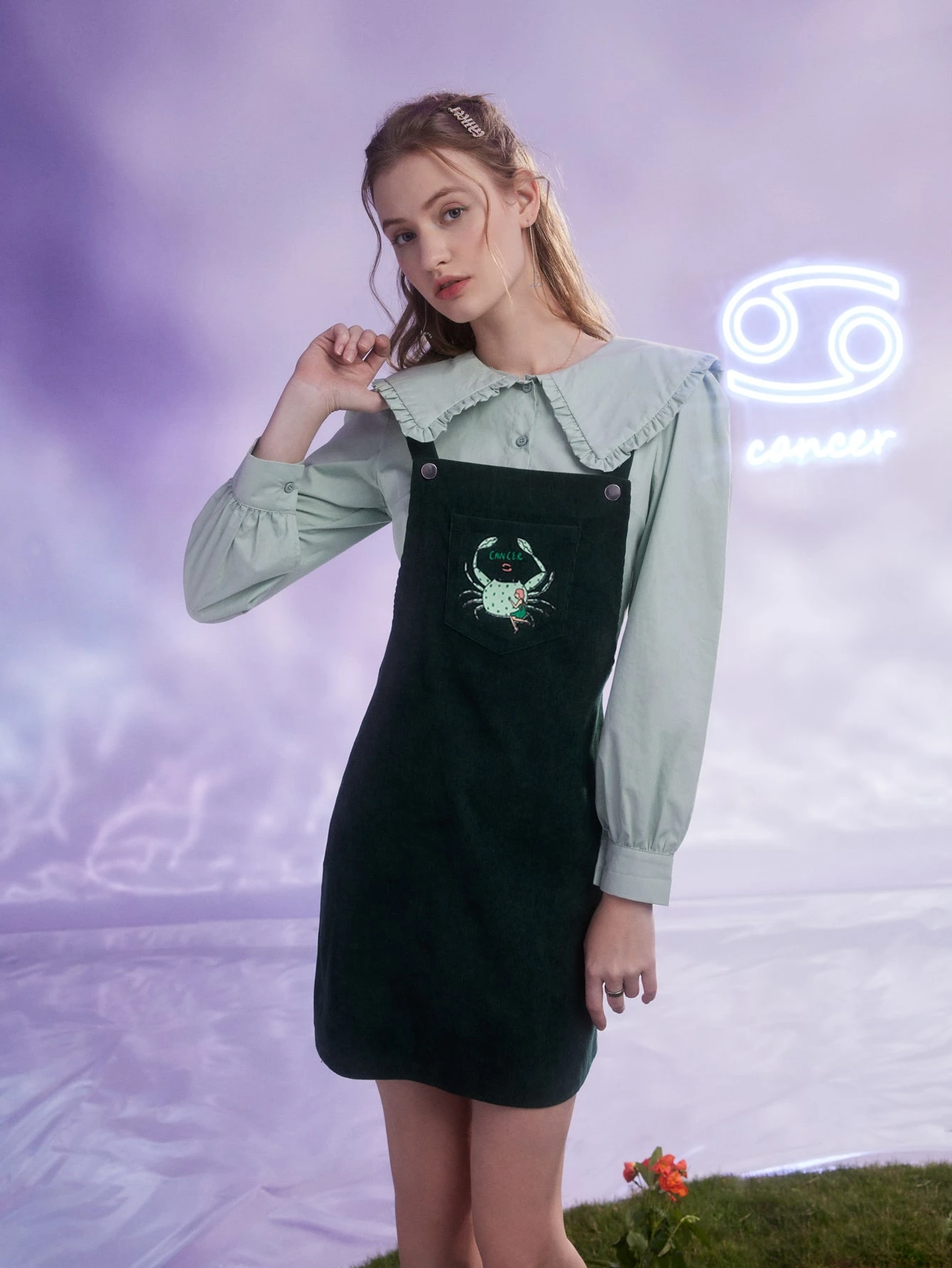 Amor Fati Abito salopette lettere granchio grafico tasca di velluto a coste starsalign