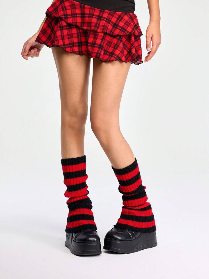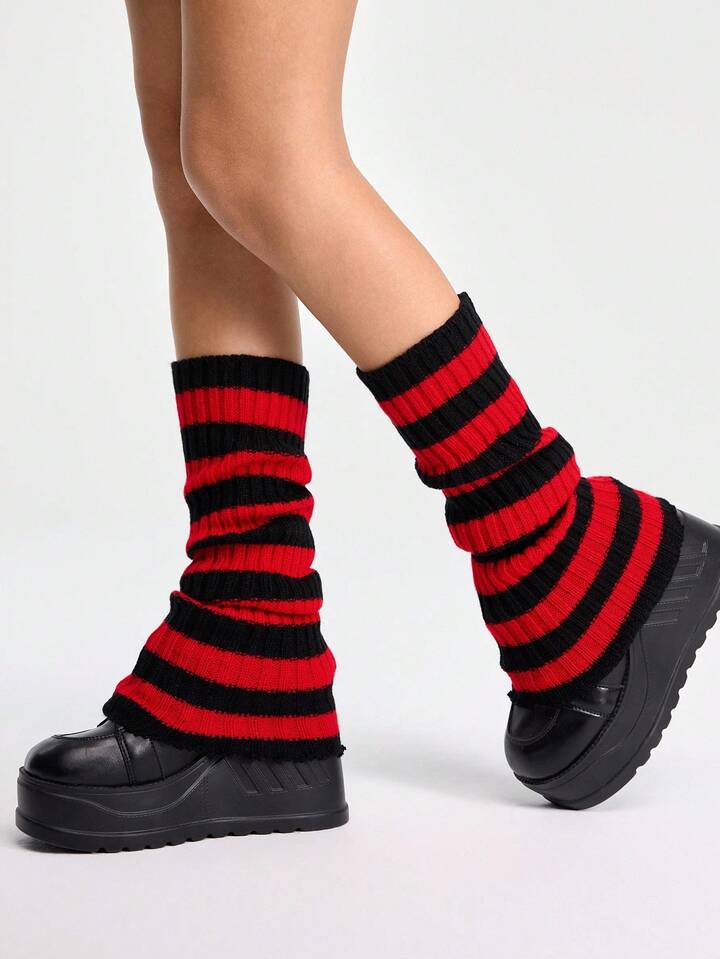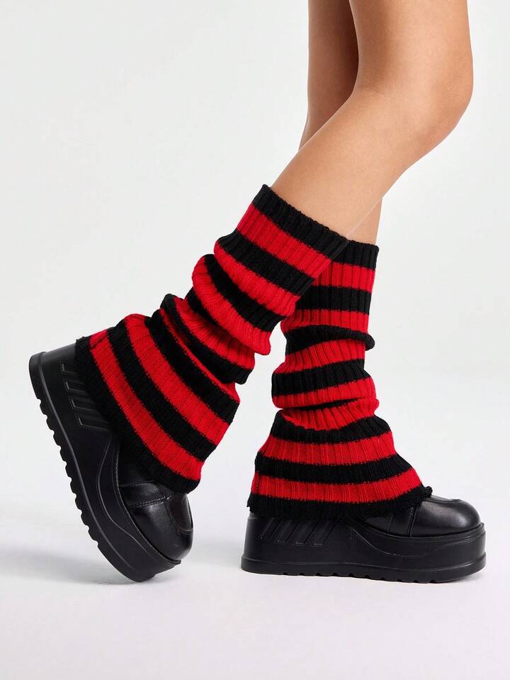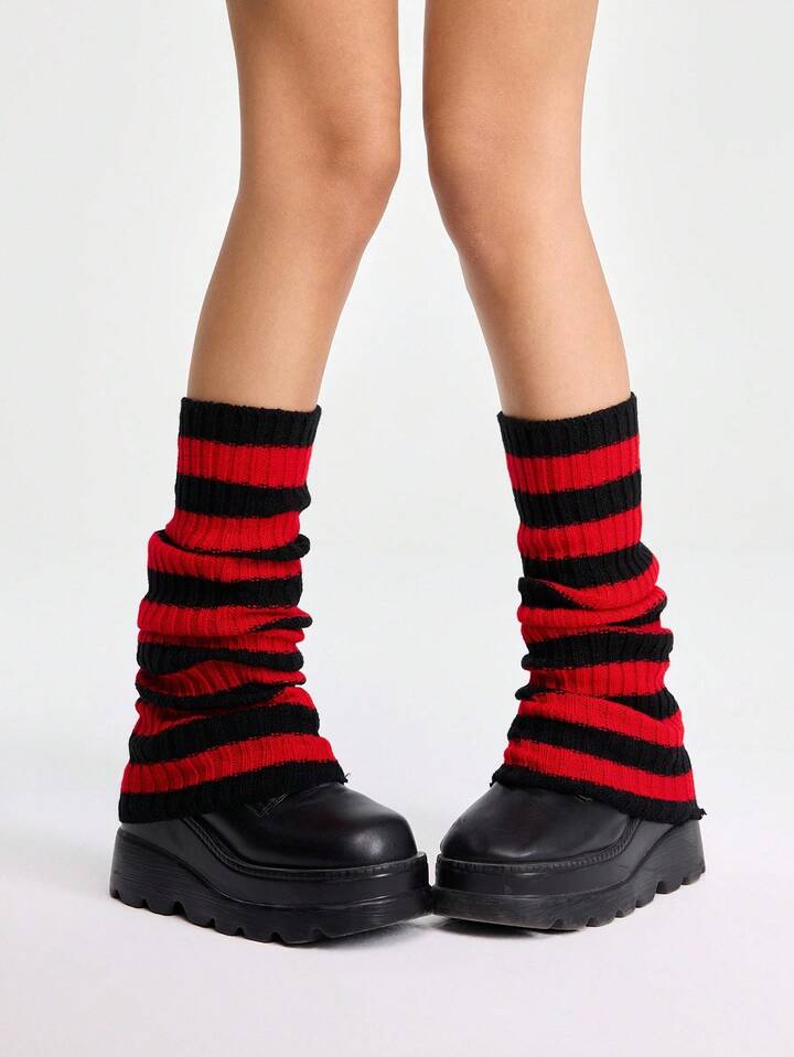 Anime 1 Paio di legwarmer extra lunghi a righe per donne, caldi