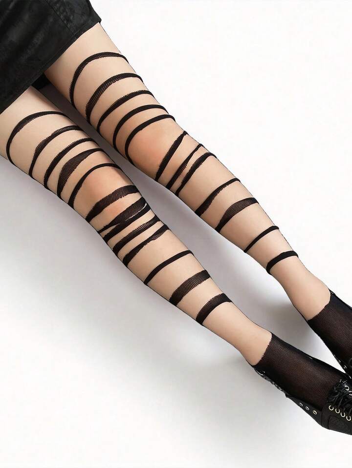 Anime 1 Paio Di Calze A Righe Strappate Personalizzate Stile Spice Girl Per Donna