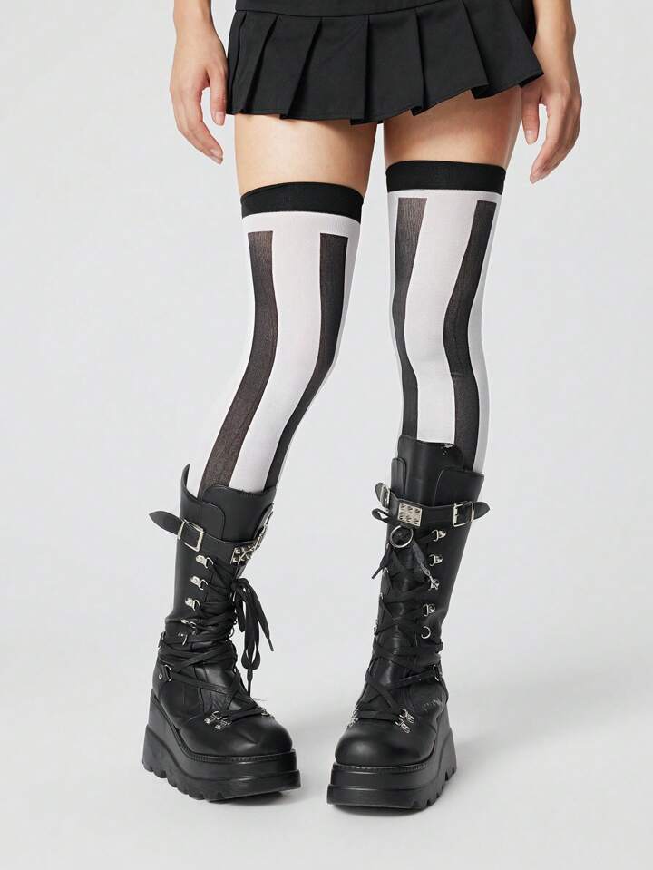 Anime 1 coppia di calze al ginocchio da donna con diamanti e righe verticali Yin-Yang, adatte per tutte le stagioni