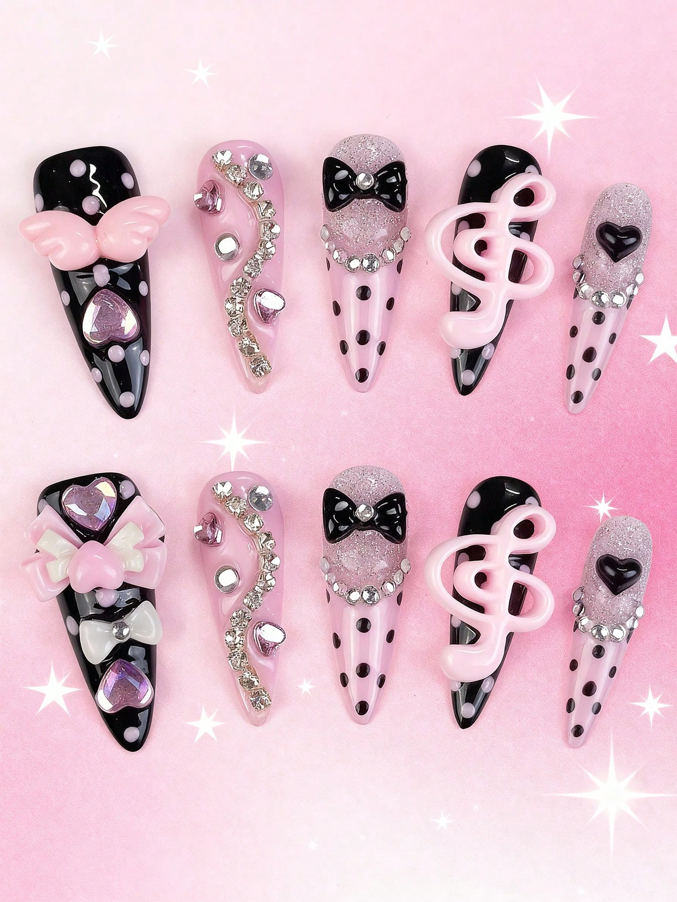 Anime 10 pezzi Adesivi per unghie Y2K carini a forma di cuore, stella, fiocco, ala con nastro