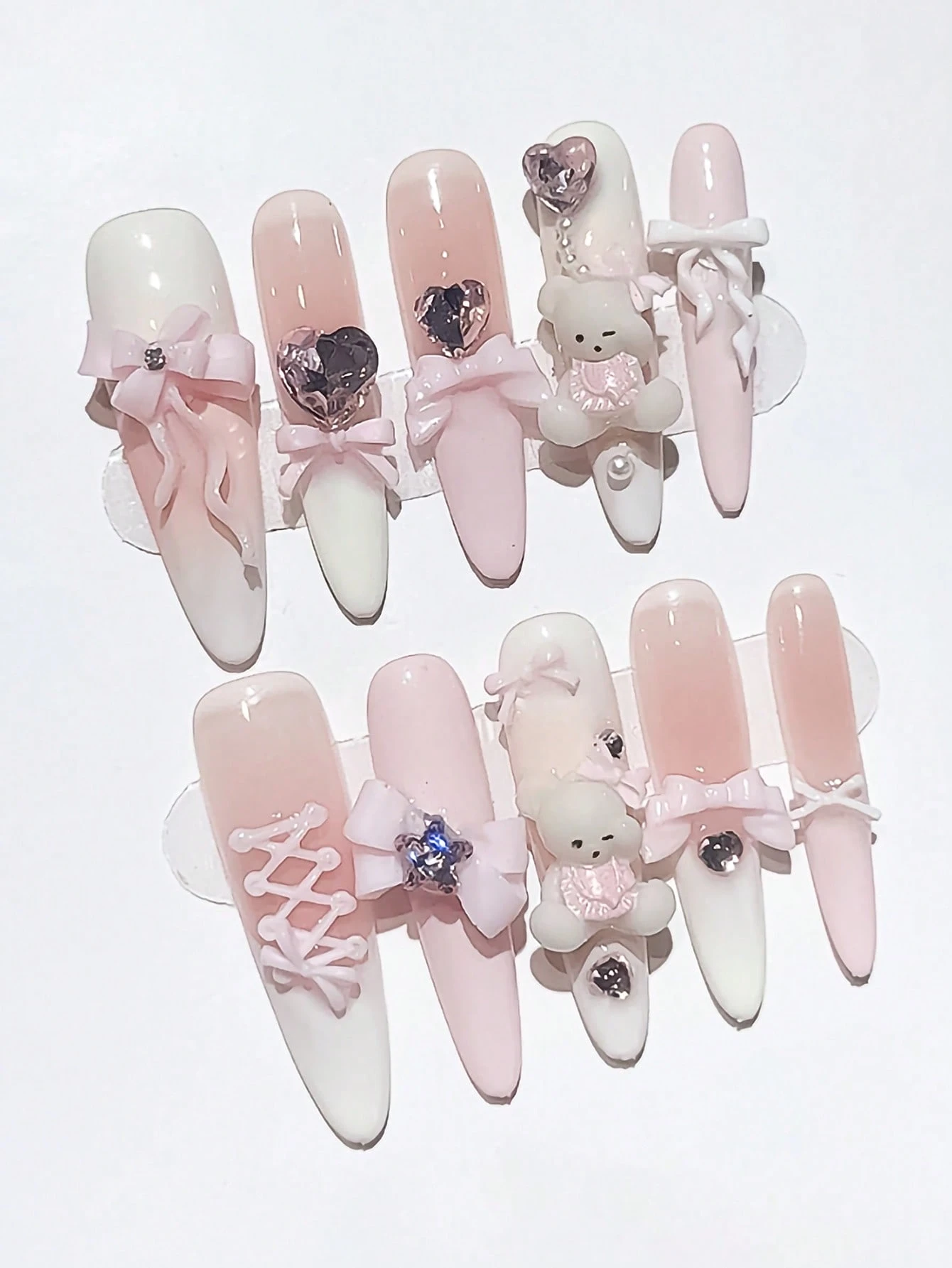 Anime 10 pezzi Adesivi per unghie Y2K carini a forma di cuore, stella, fiocco, ala con nastro