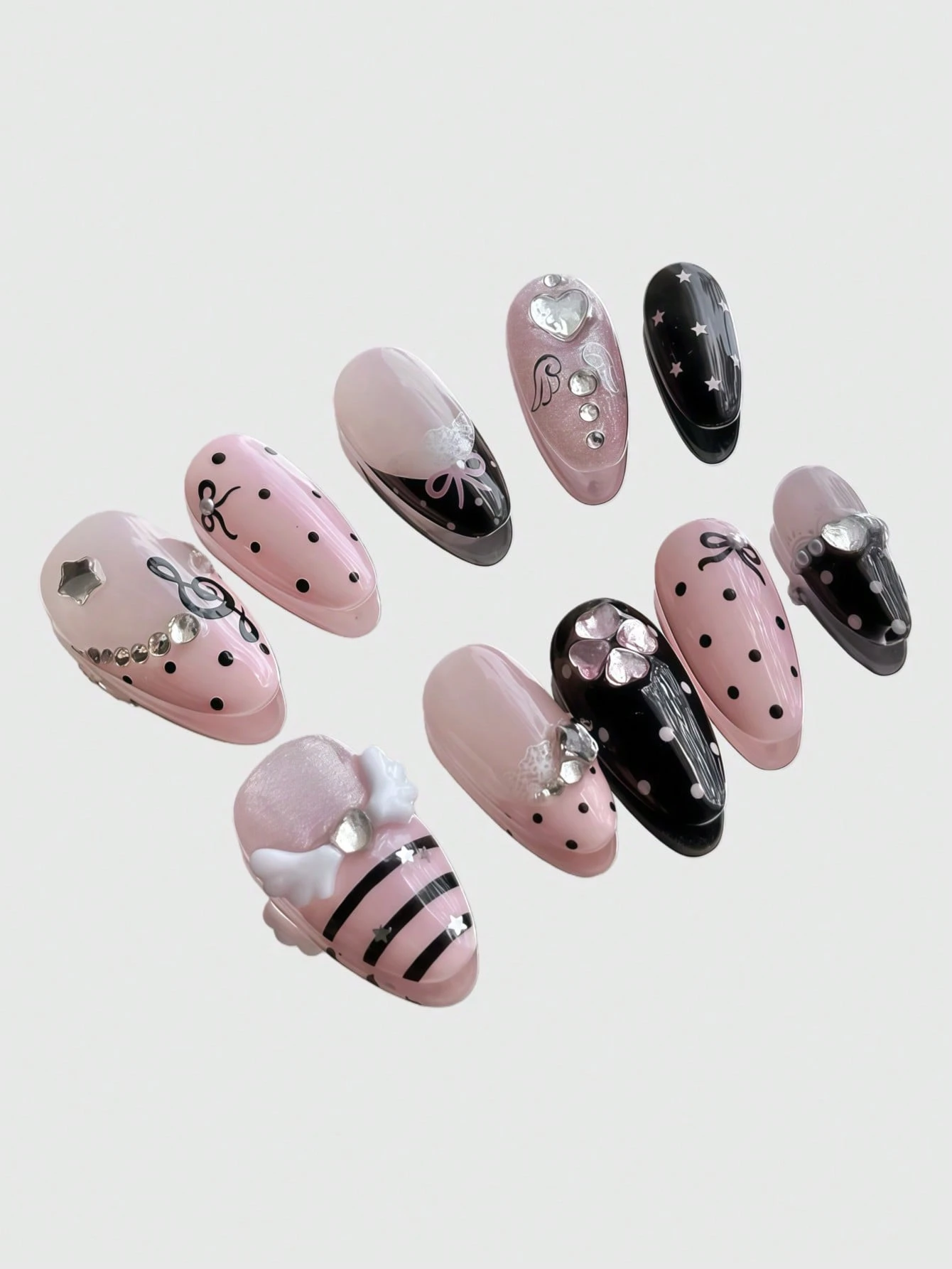 10 pezzi di unghie finte decorative in stile Y2K retrò con stelle, pois, righe, pop art, grunge, note musicali, fatte a mano, adatte per college, festival musicali, appuntamenti, ecc.