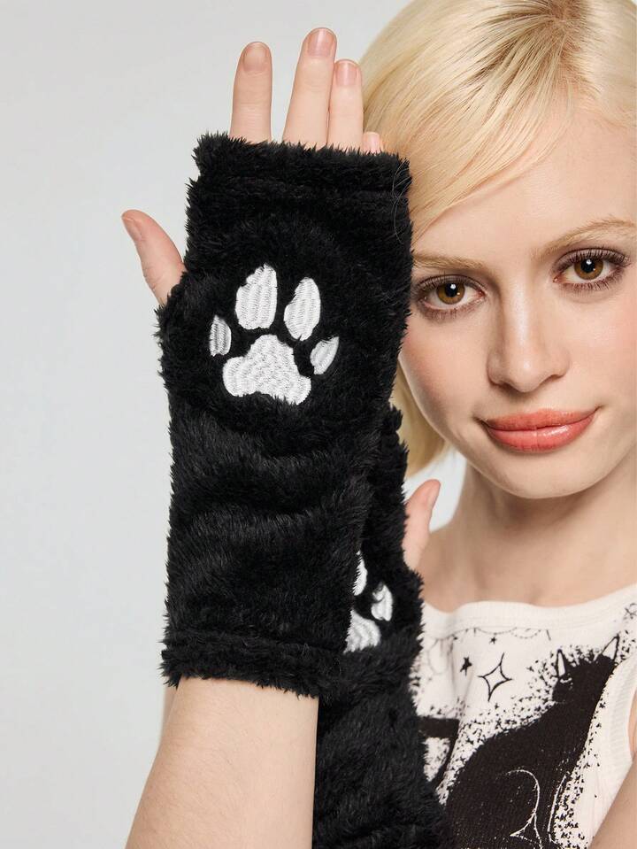 Anime 1 pezzo Guanti senza dita neri in stile Y2K, Baddie, Kawaii, con motivo carino a zampa di gatto, design minimalista, adatti per scuola, shopping, pendolarismo