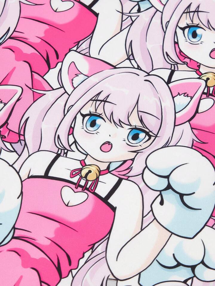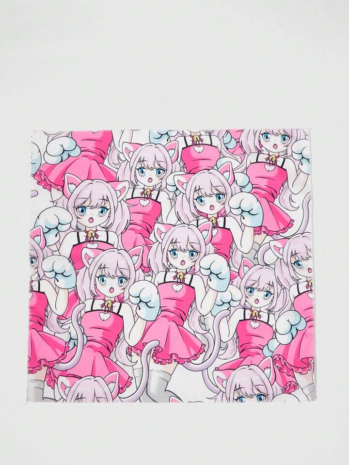 Anime 1 pezzo Foulard quadrato piccolo con stampa di gatto carino e orecchie di gatto, accessorio versatile con elemento a campanella, fazzoletto multifunzionale e creativo