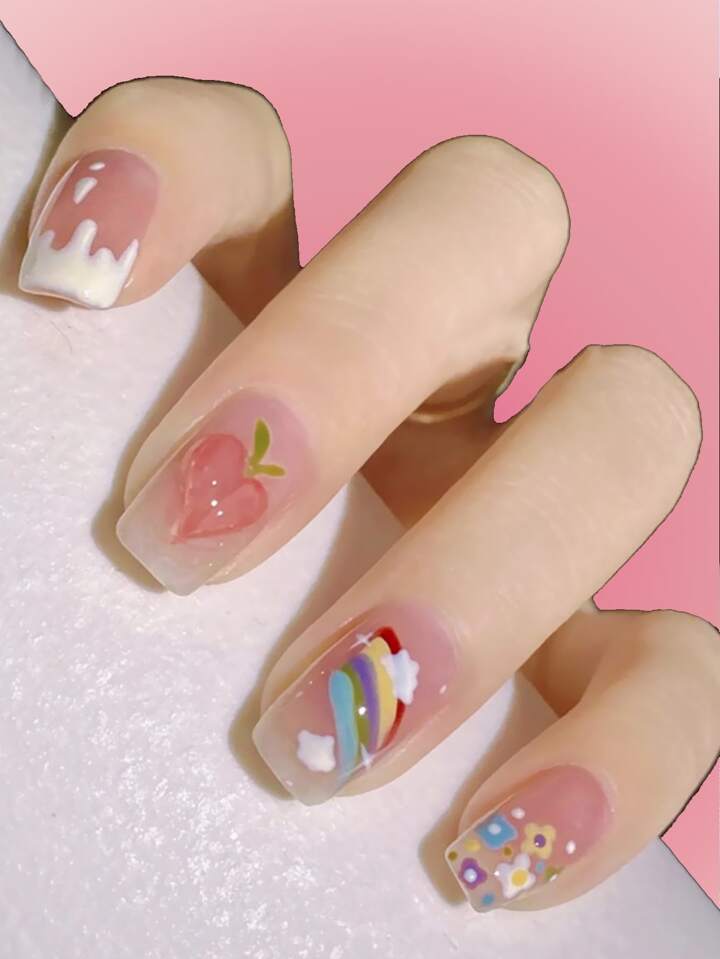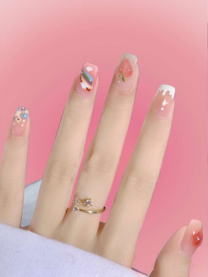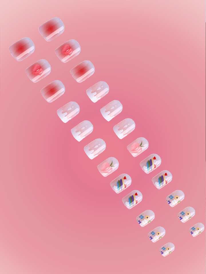Anime 24 pezzi con stampa floreale Unghie finte & 1 foglio nastro