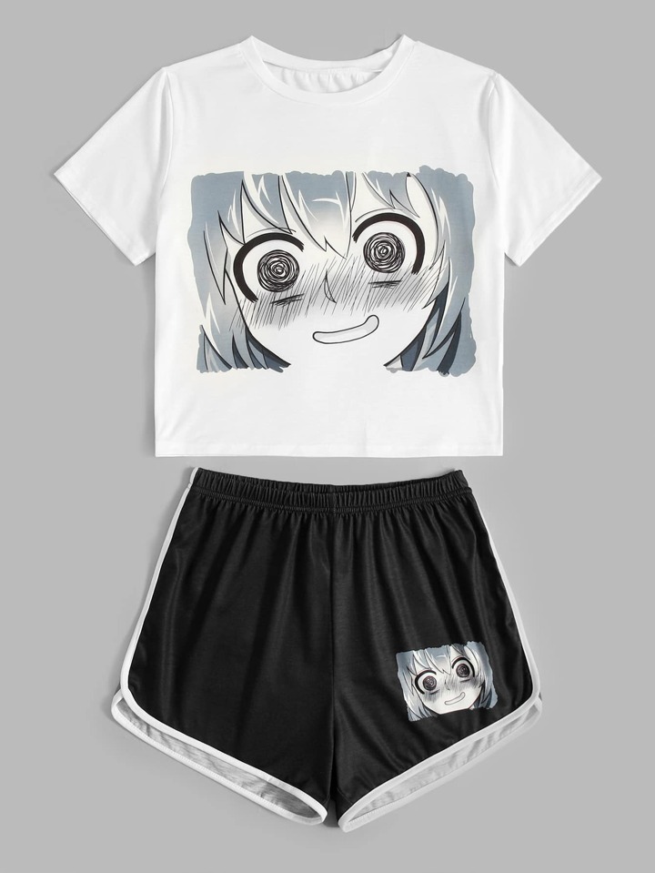 Anime Set pigiama con grafica ritratto fumetto bordo a contrasto
