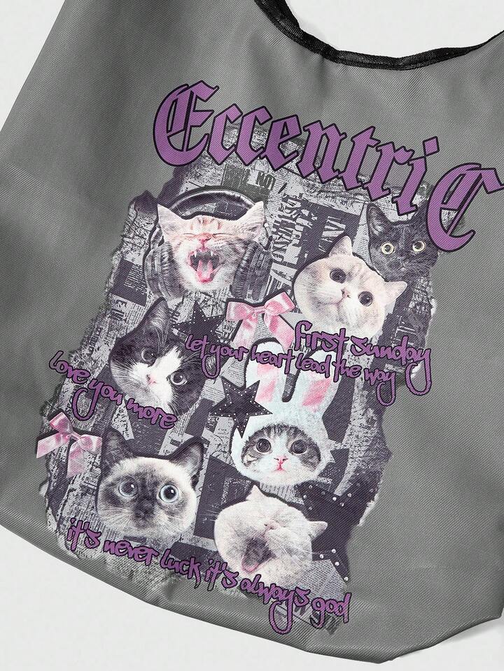 Anime Borsa shopper da donna di grande capacità, alla moda con stampa di gatti