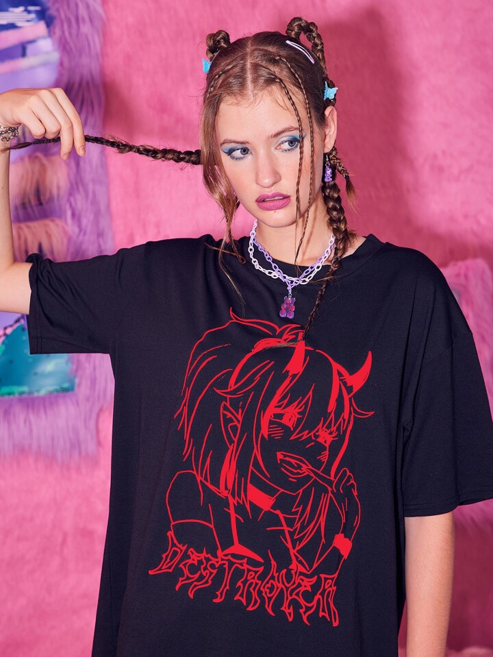Anime Maglietta con spalla scesa con stampa di ritratto