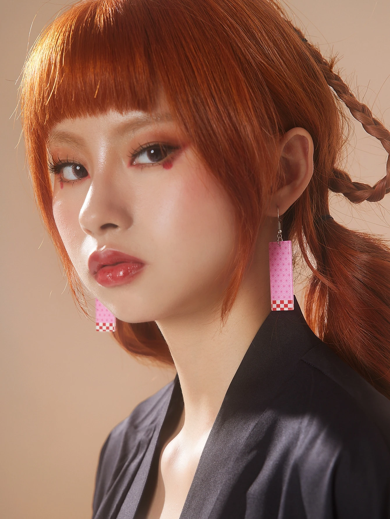 Anime Orecchini pendenti motivo a geometrico & scacchi rettangolo