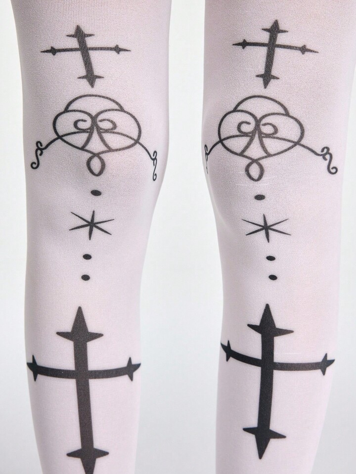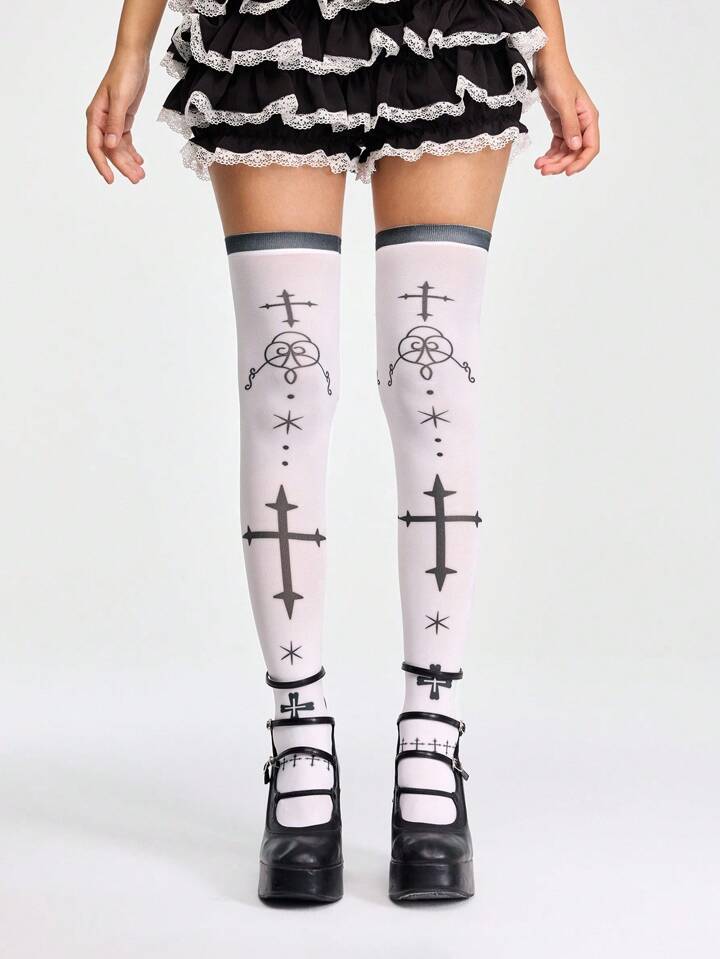 Anime Calze al ginocchio bianche con stampa a croce gotica, stile personale dolce e cool di Lolita scura, adatte per Ognissanti