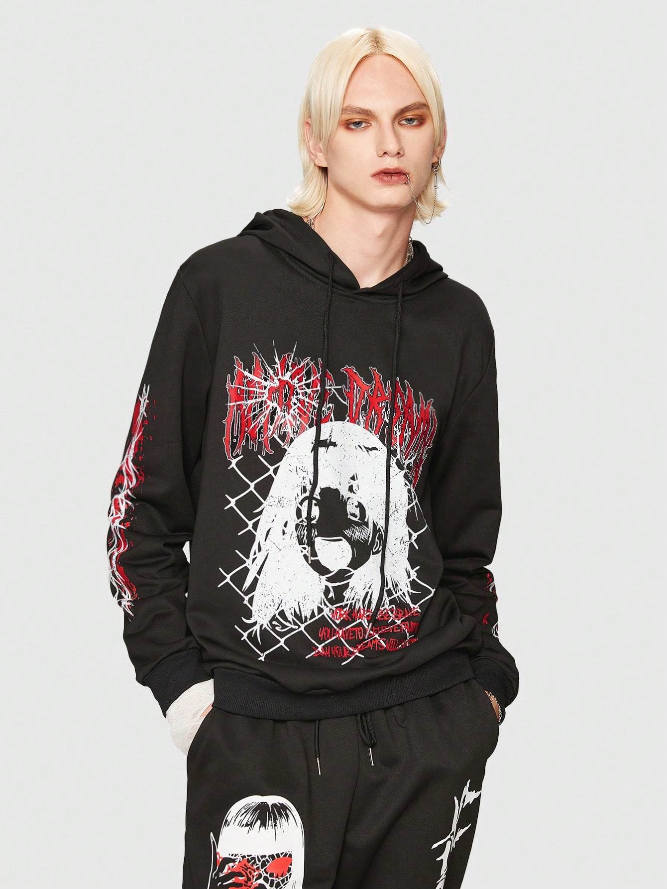 Anime Ragazzi Felpa con cappuccio con grafica figura e lettera con coulisse