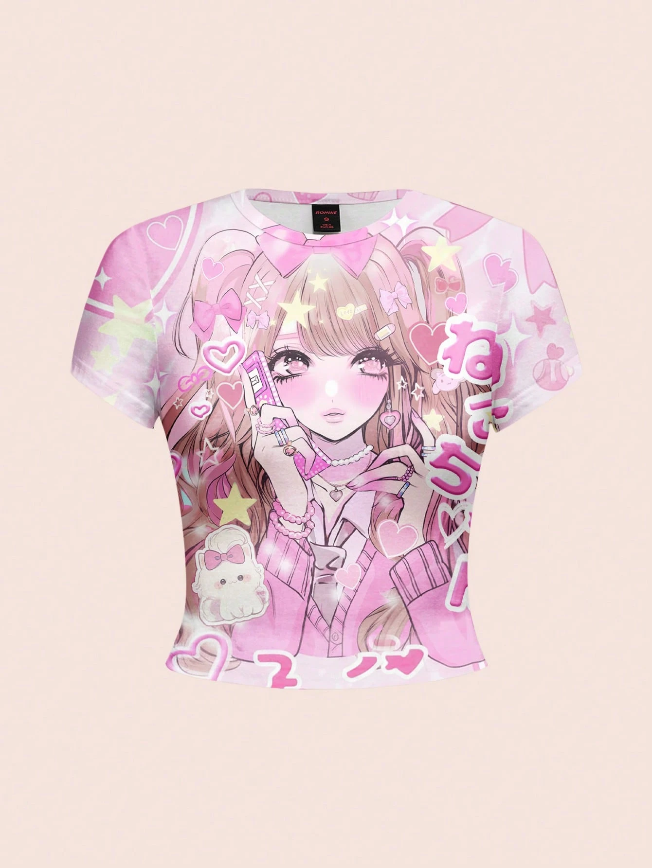 maglietta a maniche corte da donna con stampa di cuori stile anime kawaii