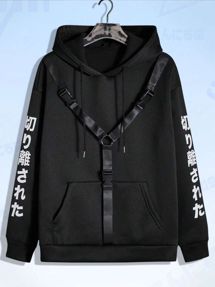 Anime Felpa Con Cappuccio Termica Con Coulisse Per Dettaglio Push Buckle E Grafica Lettering Per Uomo
