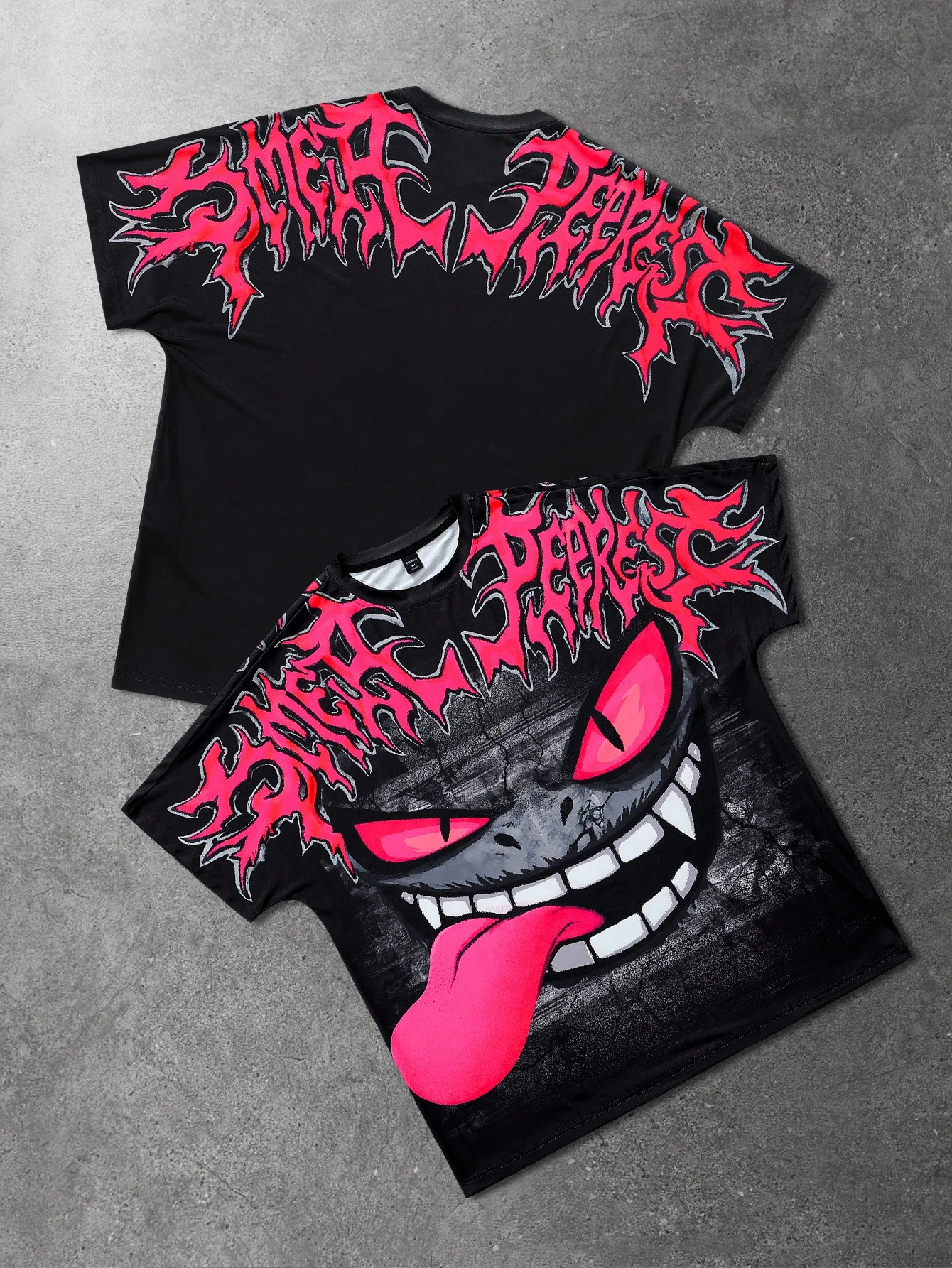 Anime Maglietta estiva da uomo con grafica a cartoni animati e lettere