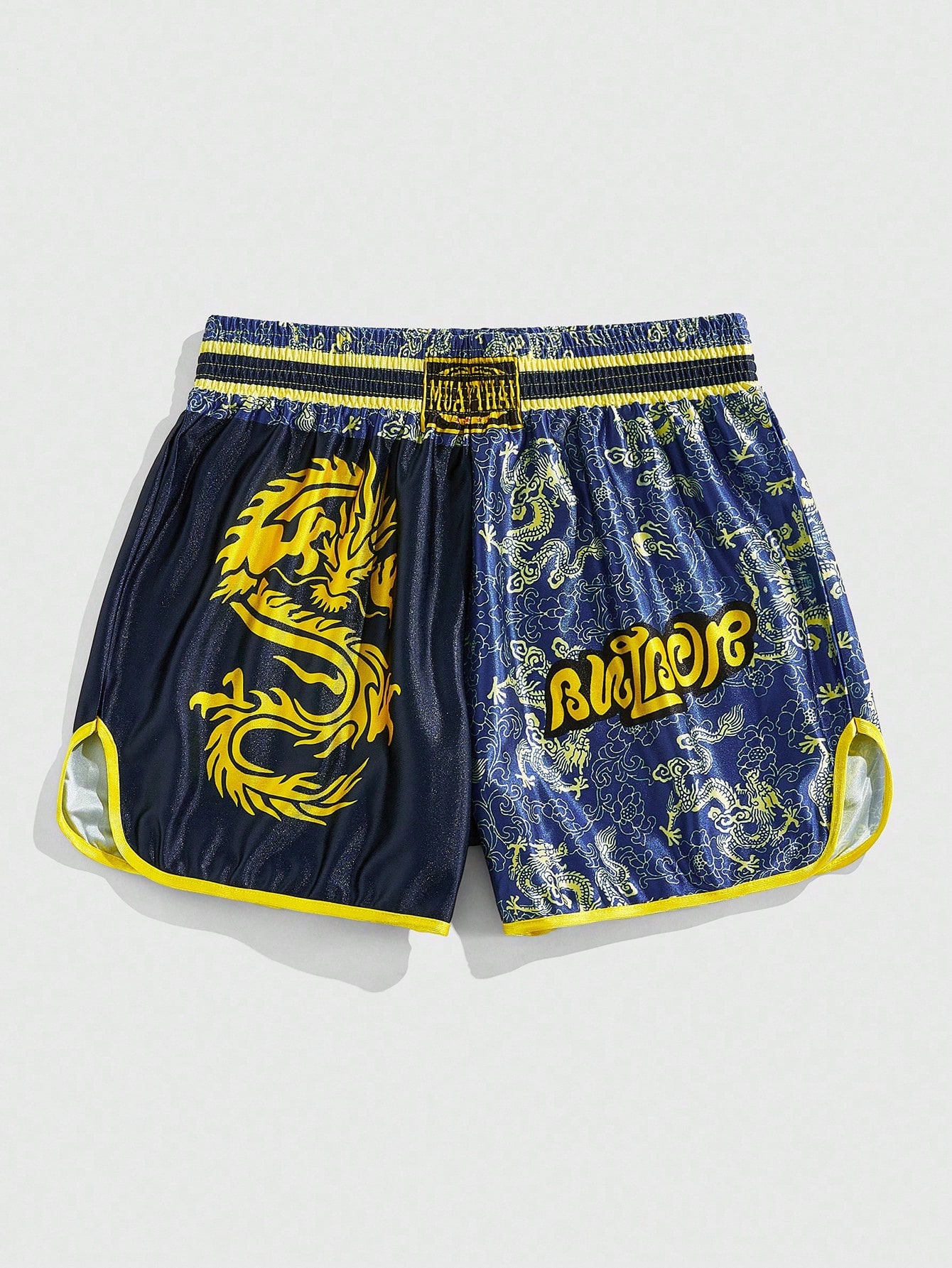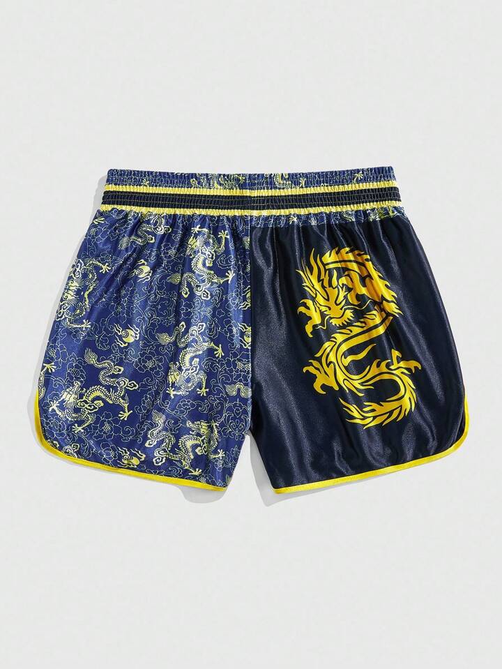 Anime Pantaloncini da uomo con fantasia drago a blocchi di colore