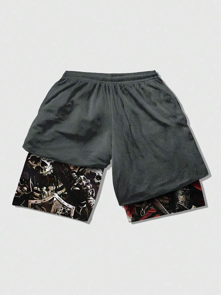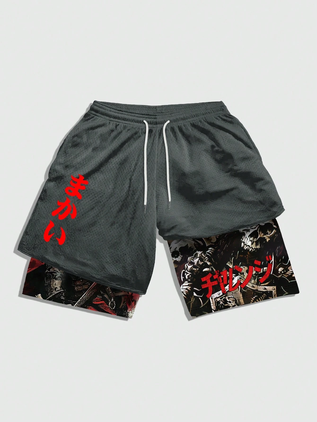 Anime Pantaloncini da uomo con vita con coulisse, grafica patchwork e 2 in 1
