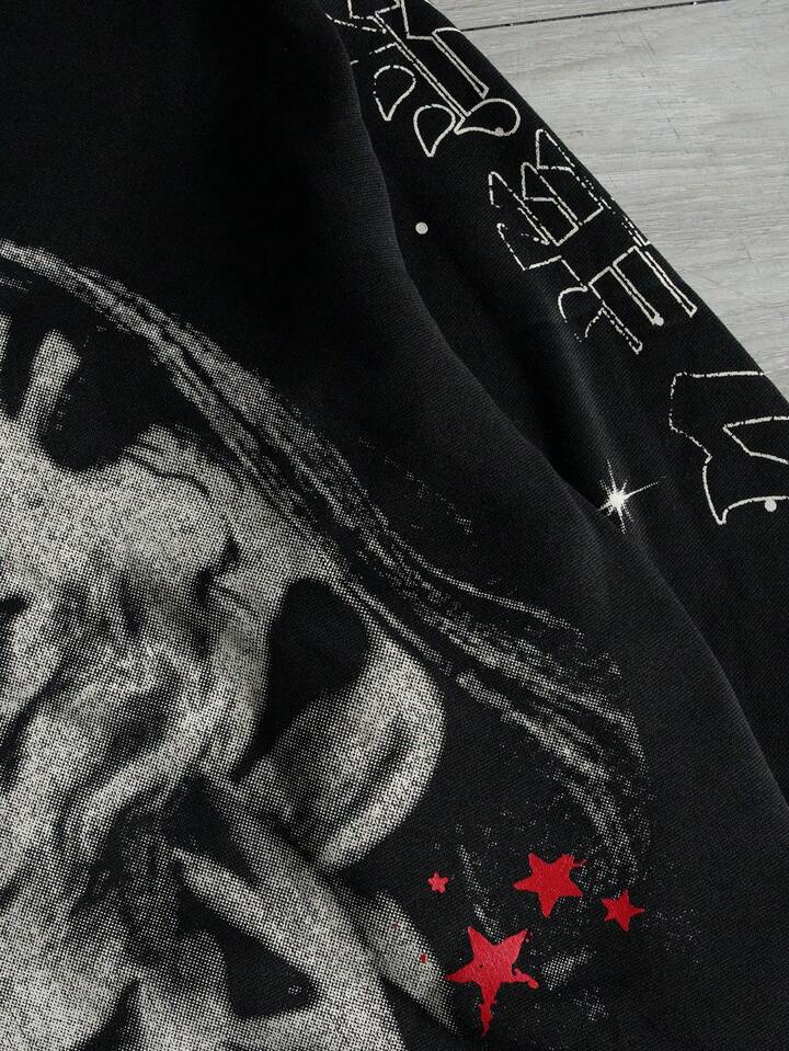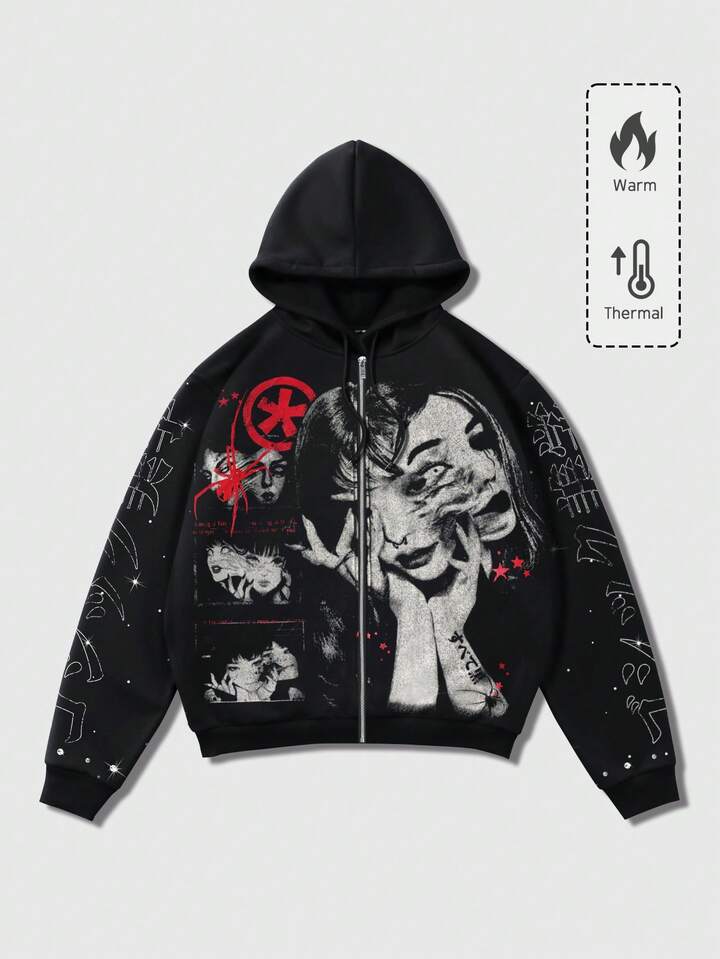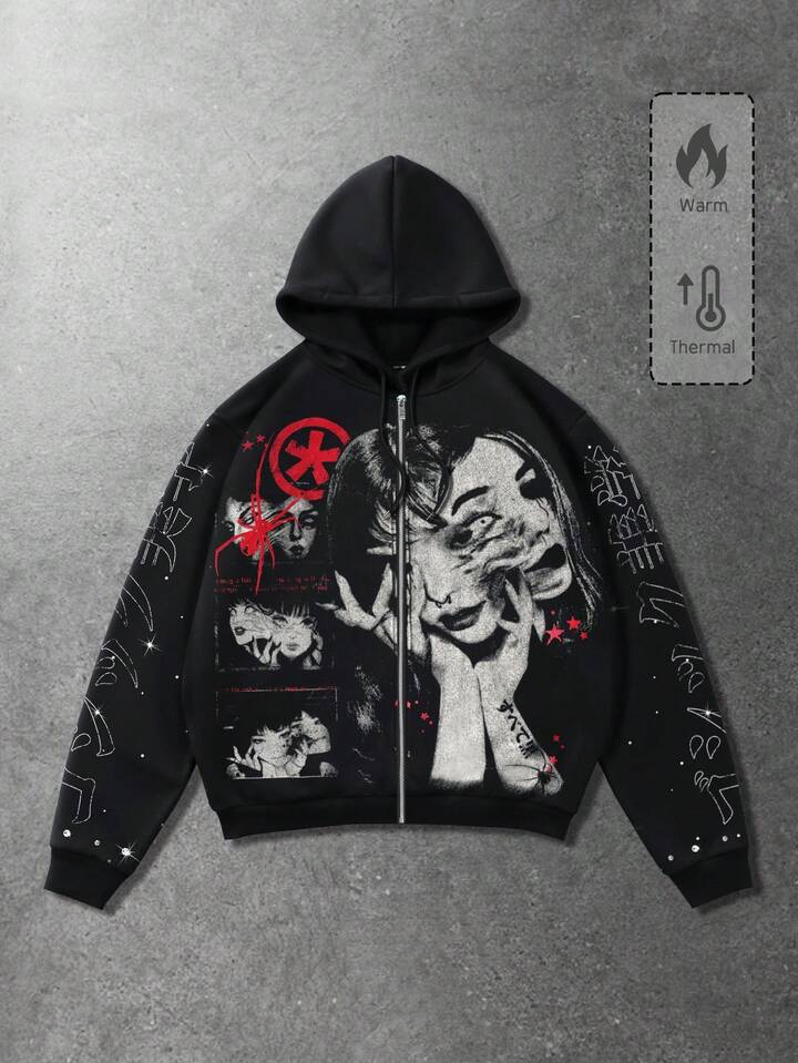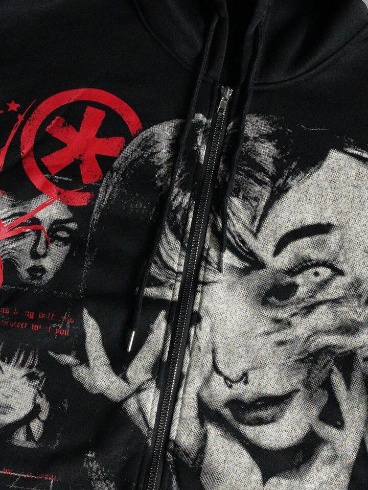 Anime Felpa con cappuccio da uomo con stampa scura a figure di strada
