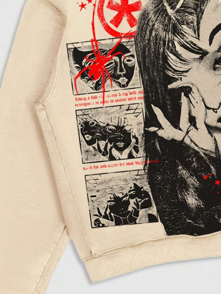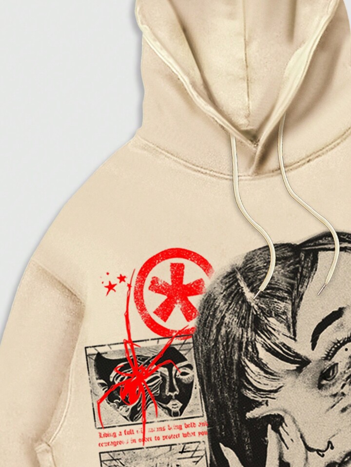 Anime Felpa con cappuccio in pile con stampa di slogan e ritratti, cappuccio con cordoncino,adatta per uomo, autunno/inverno