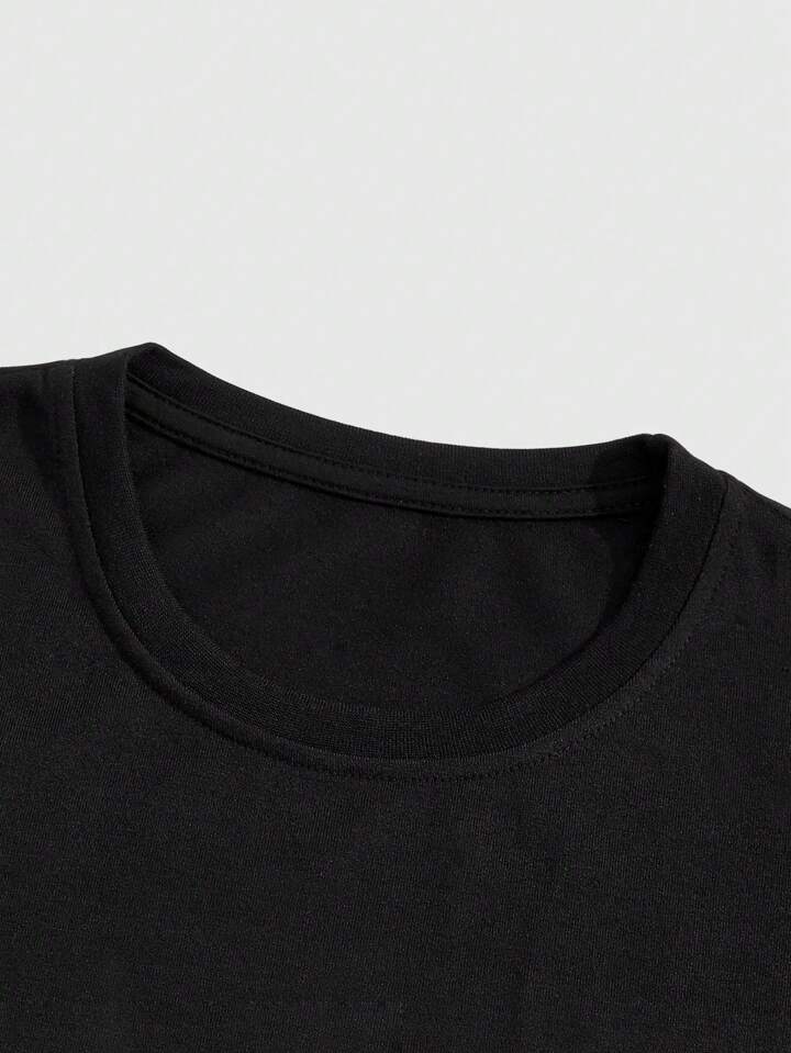 Anime Maglietta casual estiva da uomo con stampa a caratteri cartoni animati, girocollo e maniche corte, con slogan, per la scuola