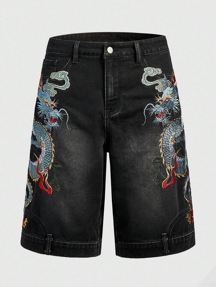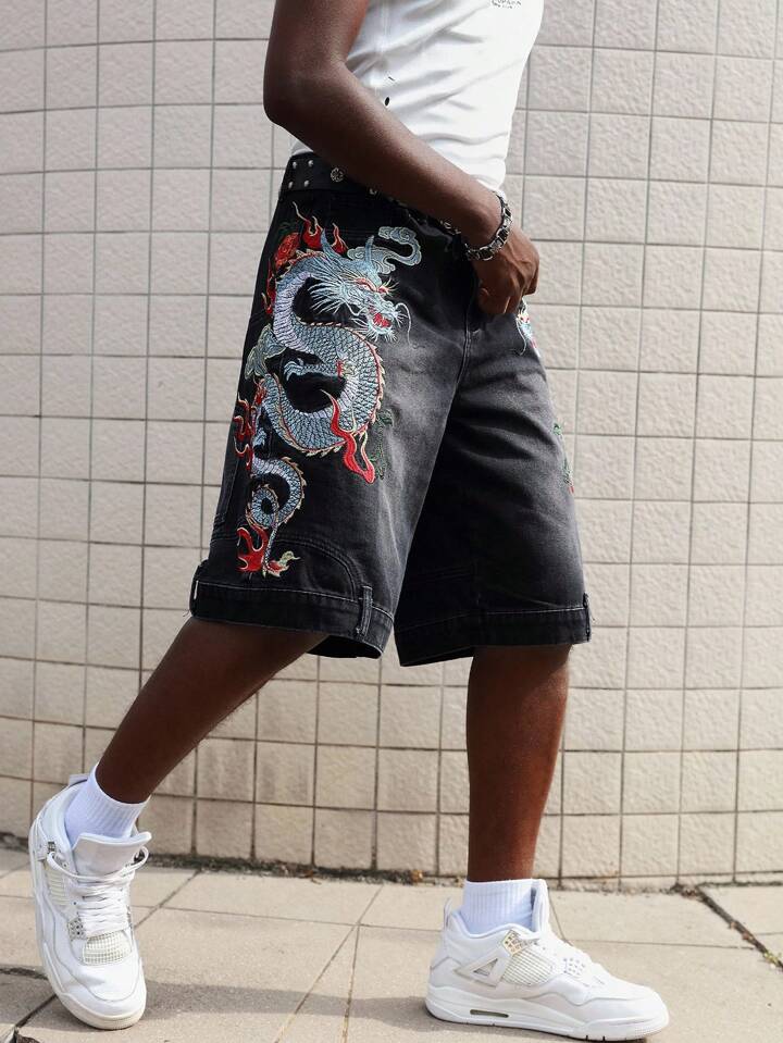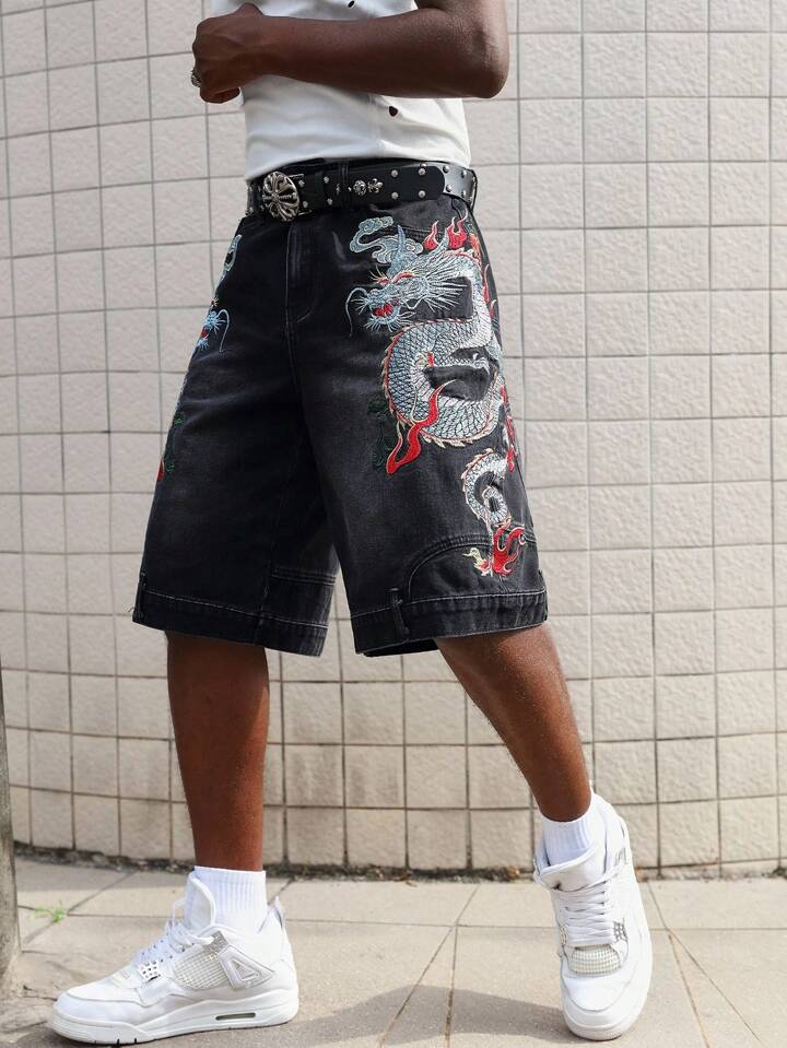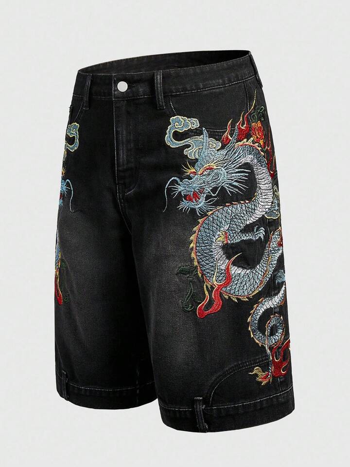 Anime Pantaloncini di jeans casual da uomo con stampa di drago per l'estate