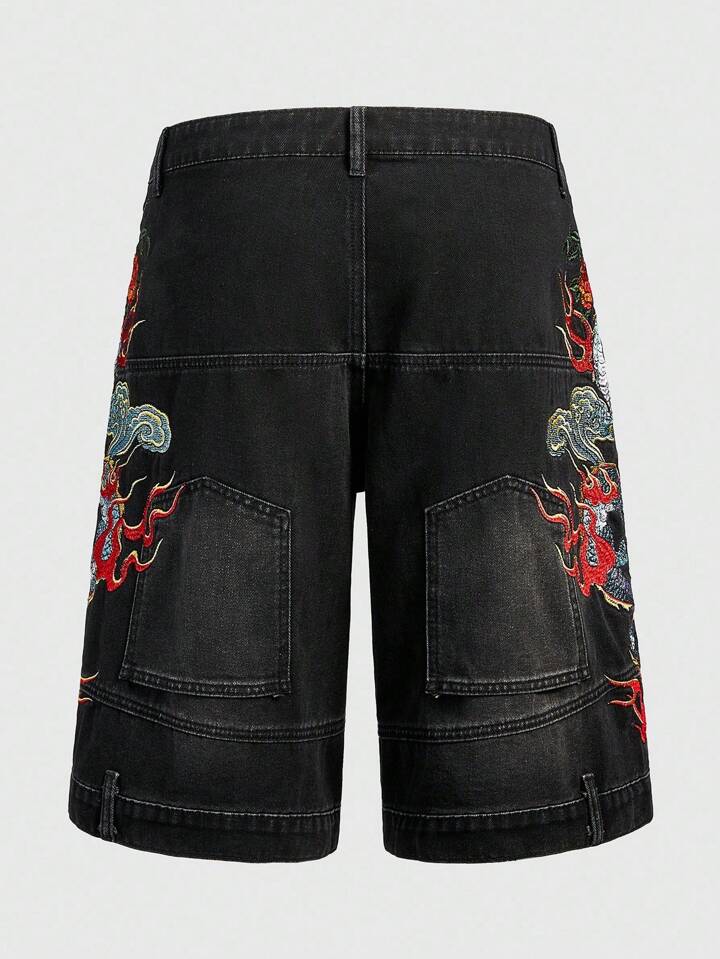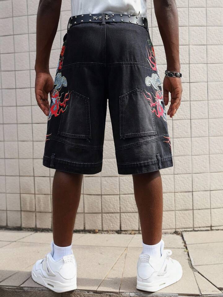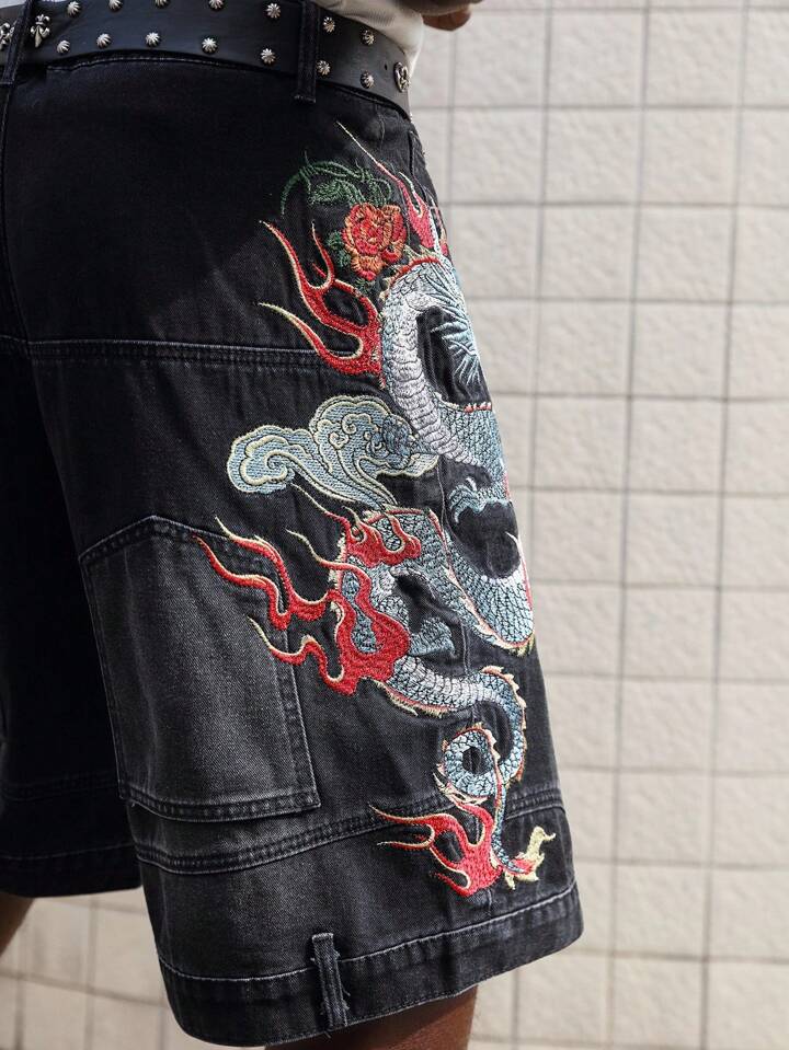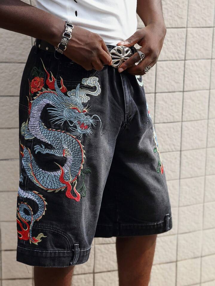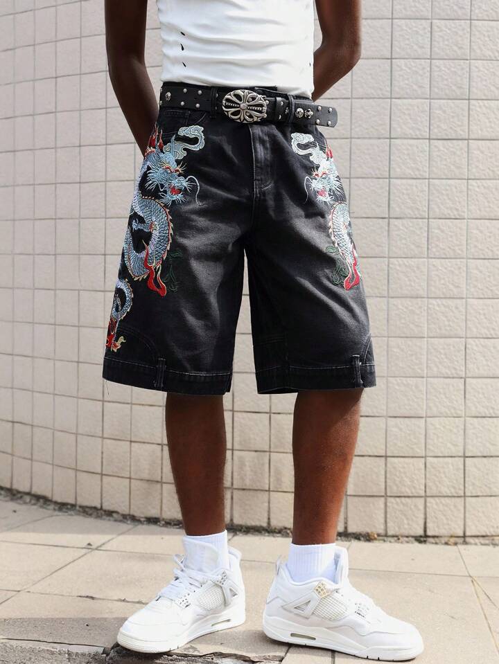 Anime Pantaloncini di jeans casual da uomo con stampa di drago per l'estate