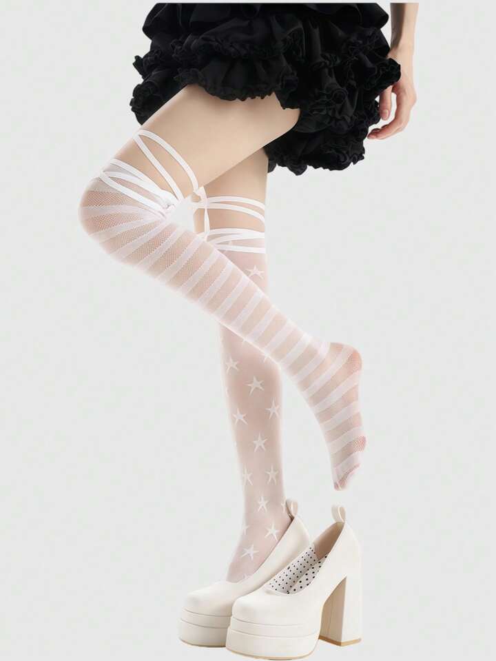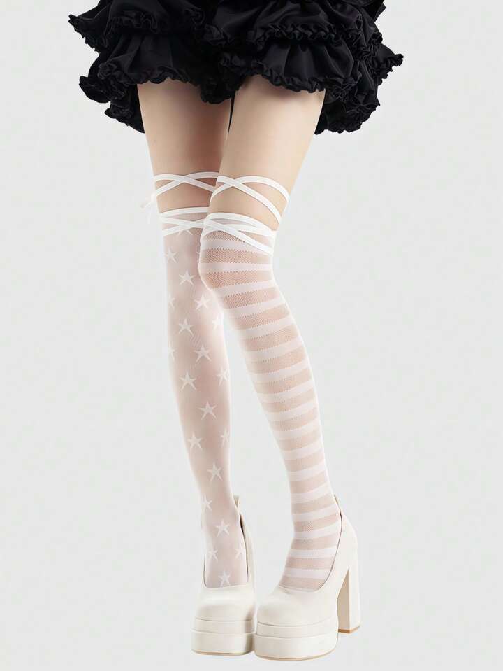 Anime Calze lunghe al ginocchio asimmetriche stile punk con stelle e righe, di moda Y2K versatili, adatte per feste, raduni, festival musicali, Ognissanti
