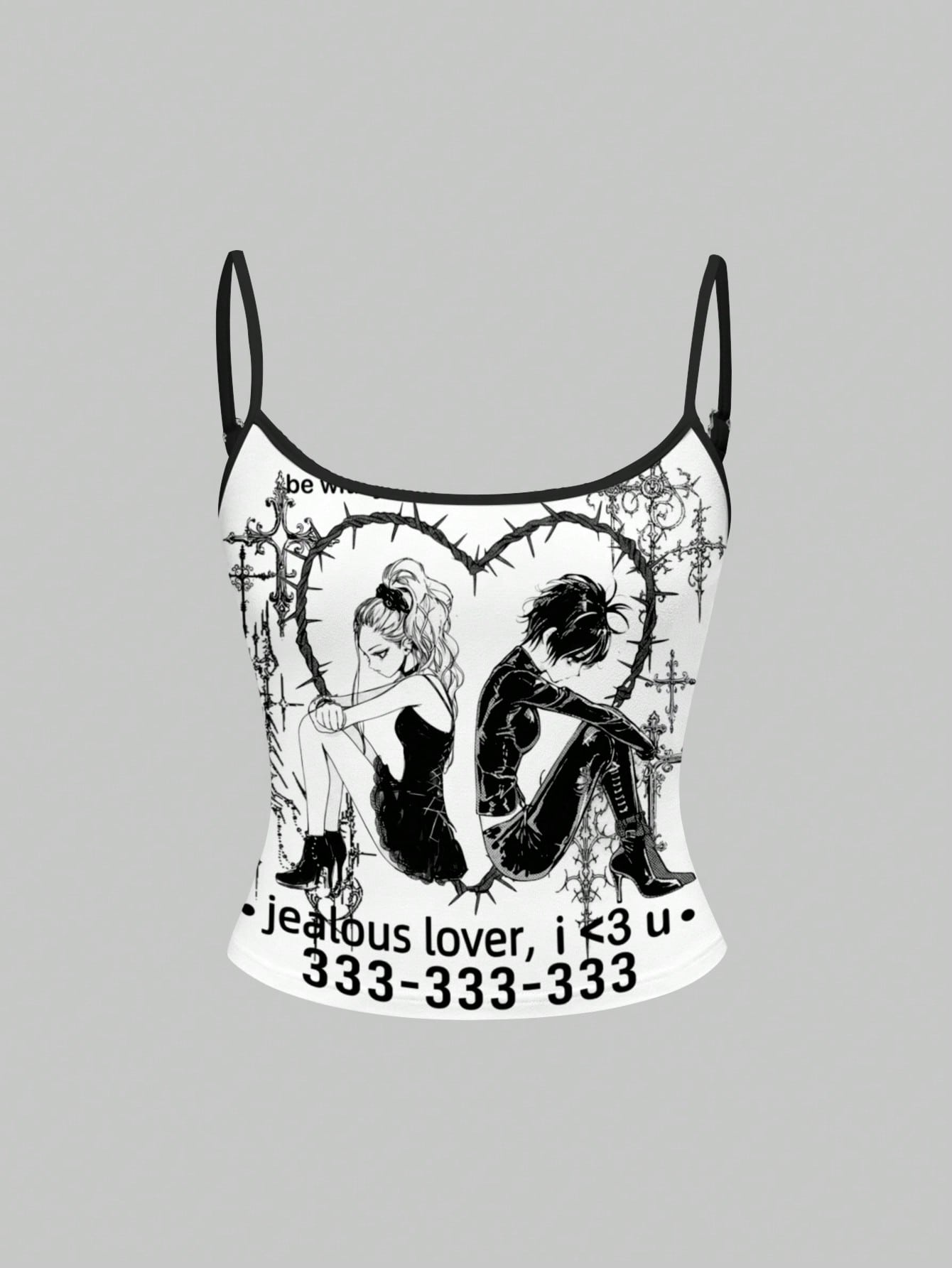 Anime Canotta da donna stile punk Y2K, stampa integrale in bianco e nero, stile baddie punk vintage