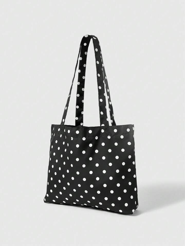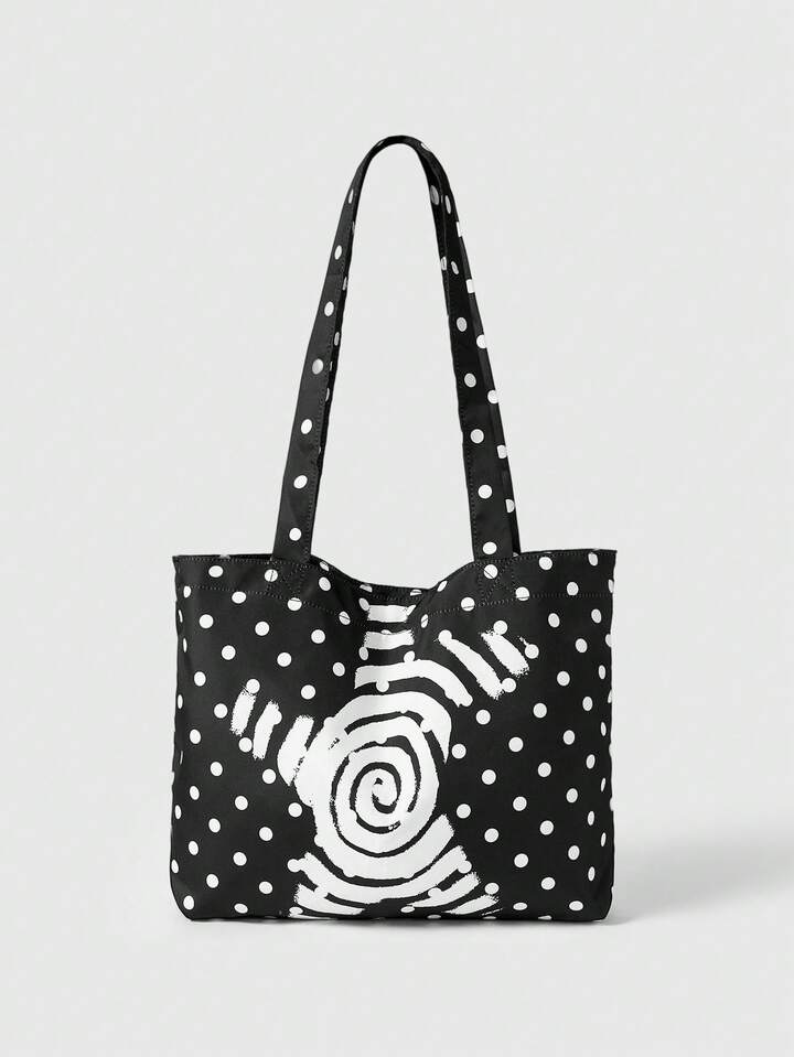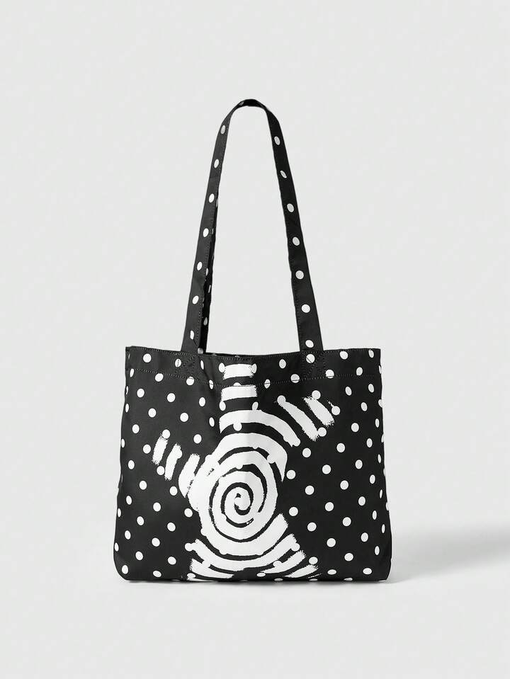 Anime Borsa nera per spalla multiuso con capacità largaconstellazione ruotante e motivo a pois, borsa a tote versatile alla moda adatta per un computer portatile, ideale per utilizzo quotidiano