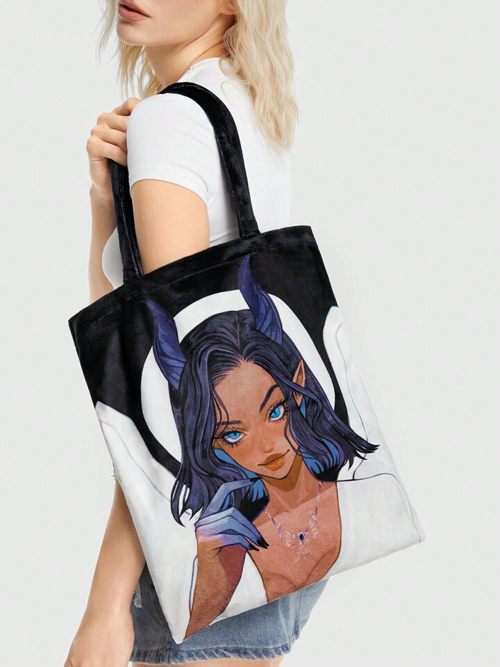 Anntherosee Anime Borsa Shopper In Flanella Grafica Figura