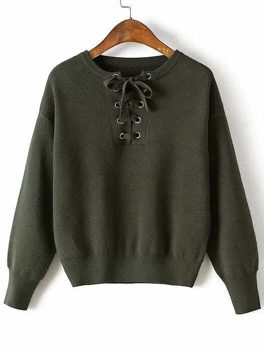 Maglione Spalle Cascanti Con Lacci Occhielli - Verde Miltare