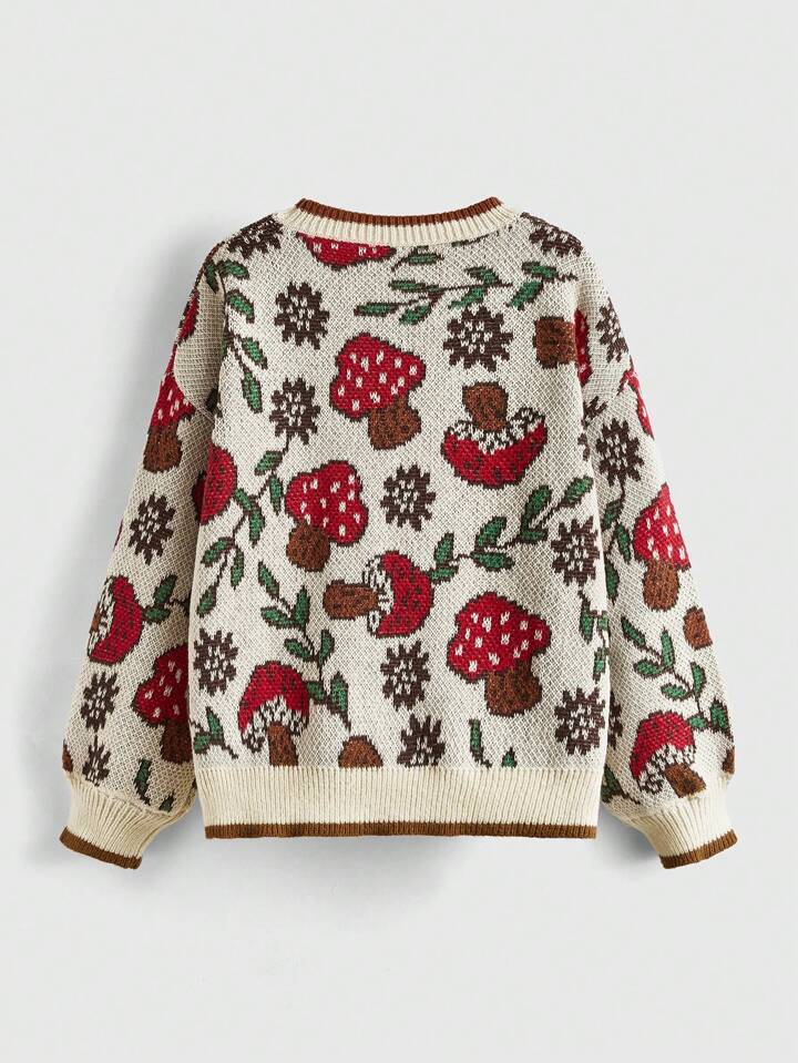 Maglione casual con motivo a fungo carino e kawaii, da artista, adatto per l'autunno e l'inverno, per feste e vacanze