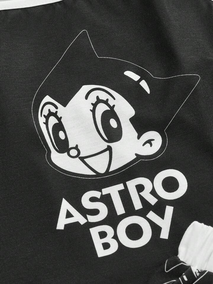 Astro Boy X ROMWE Set pigiama con canotta e pantaloncini con grafica di figure cartoni animati