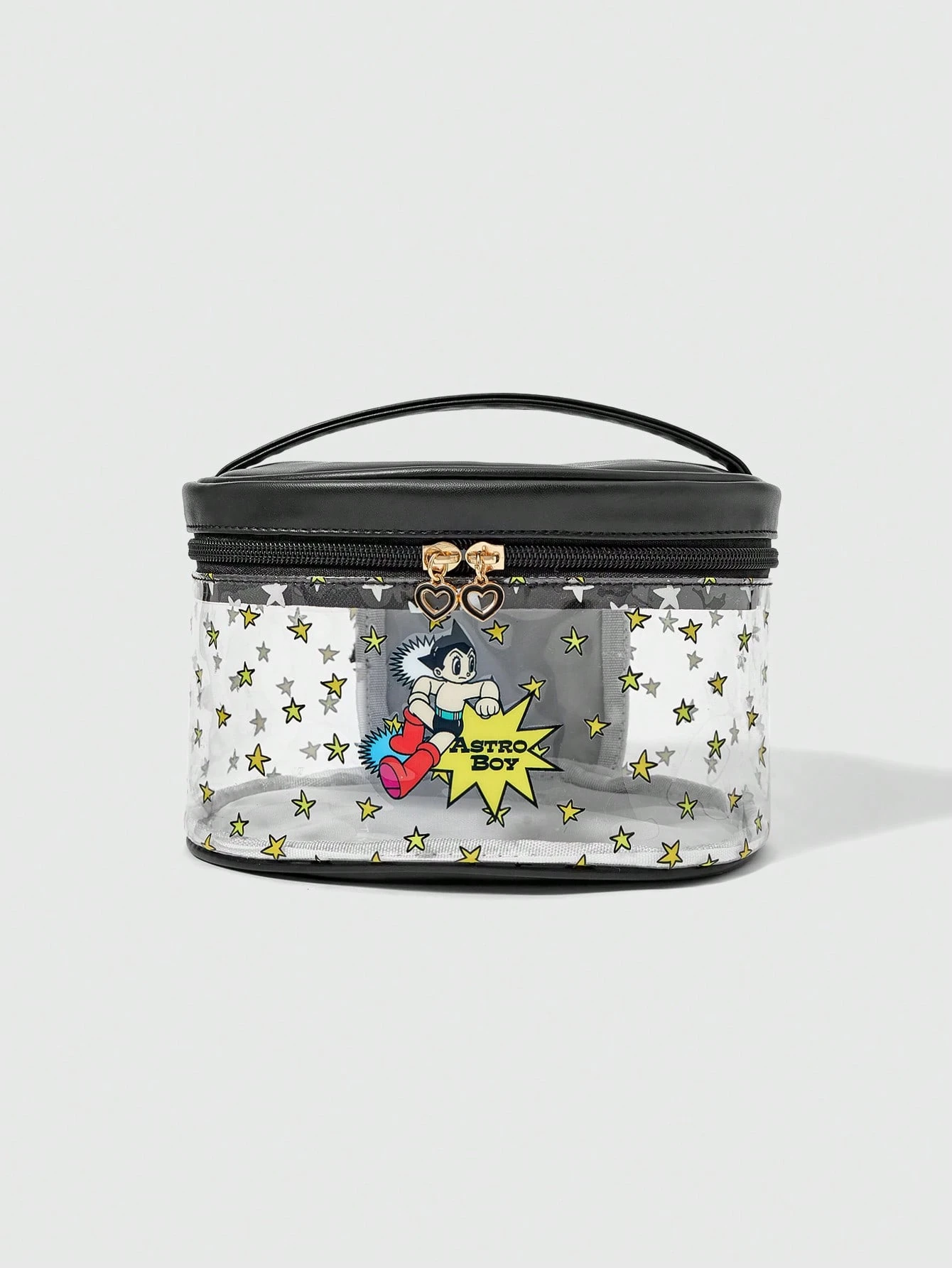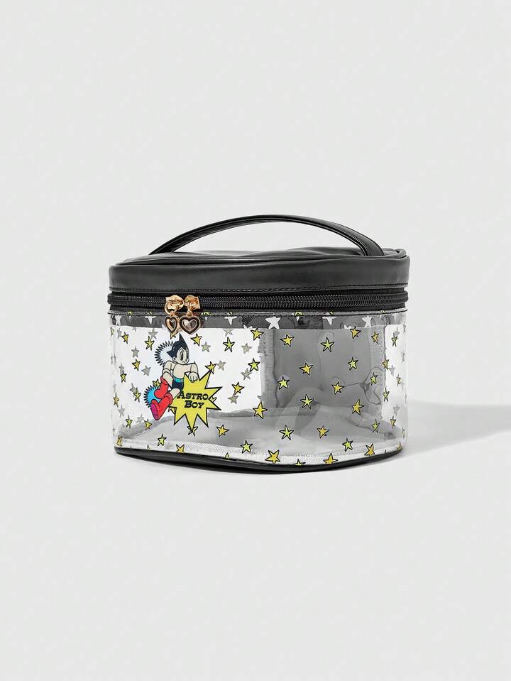 Astro Boy X ROMWE Borsa per il trucco con motivo a cartoni animati e stelle, di grande capacità e con design copertina a ribaltamento portatile
